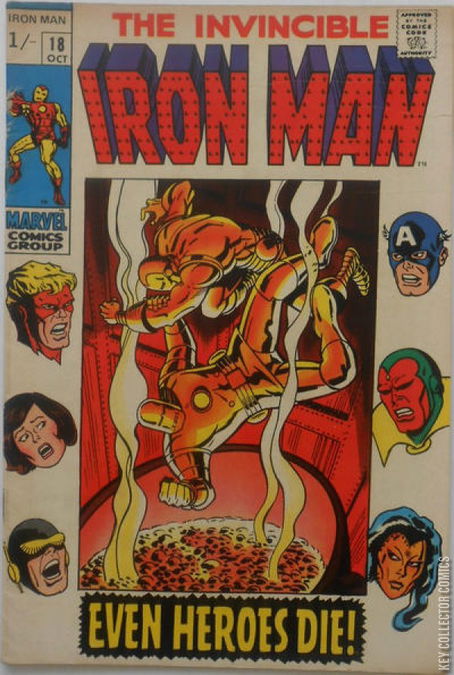 It's an action-packed issue as Midas sends Tony and Madame Masque to break into Stark Industries to capture...Tony Stark! However, Midas does not know that he already has the real Tony Stark, and it's the life model decoy that is actually running Stark Industries. What a twist! When the life model decoy dons Iron Man's armor, Tony only has one option...wear the old golden suit of armor. Will the Avengers arrive in time to save Tony? And is Madame Masque having second thoughts about working for Midas? The story of Iron Man's failing heart condition continues in Avengers #69.