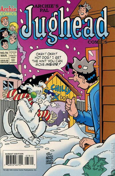 Featured Story: "Where the Girls Are" (Gladir, Goldberg, Esposito). The ladies of Riverdale High love meeting boys on the internet, but hate that they can't see their faces (wazzup, 90's!). Jughead has a fix for that! Featuring: Jughead, Mr. Weatherbee, Ms. Beazly, Reggie, Archie Additional Stories: "The Big Prize" (Gladir, Goldberg, Esposito). Jughead and Archie enter a snowmobile race. Featuring: Jughead, Archie, Betty, Veronica "Horsin' Around!" (Golliher, Ruiz, Lindsey). Jughead hasn't seen Big Ethel in a minute. Featuring: Jughead, Archie, Ethel "Rug Rats" (Doyle, Goldberg, Esposito). Jughead and Dilton team up for the science fair. Featuring: Jughead Jones, Dilton Doiley, Betty Cooper, Veronica Lodge, Mr. Weatherbee, Ms. Grundy, Reggie Mantle, Archie Andrews "A Real Turn-On" (Smith, Worley, Lapick). Jughead and Dilton discuss their computer breakthroughs. Featuring: Jughead Jones, Diton Doiley "Stay Tuned for Jughead" (Smith, Goldberg, Esposito). Jughead is fed up with all of the t.v. talkshows, so he decides to make his own. Featuring: Jughead, Archie, Sven, Hot Dog,