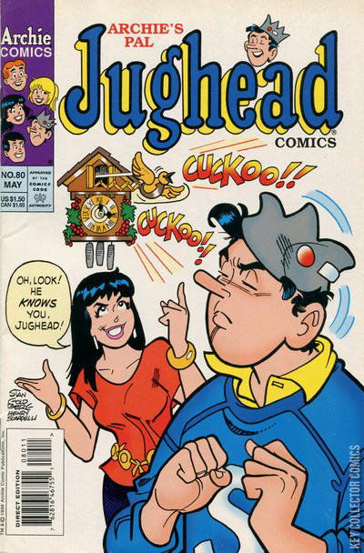 Featured Story: "Camcord Discord" (Gladir, Goldberg, Esposito). Jughead uses his camcorder to record Riverdale High students and faculty at their worst. Featuring: Jughead Jones,Sven, Ms. Grundy, Mr Weatherbee, Ms. Beazly, Archie Andrews, Moose, Reggie, Chuck, Veronica, Betty Additional Stories: "In The Doghouse" (Doyle, Goldberg, Esposito). Jughead and Archie put together a doghouse that Jughead ordered from a catalogue. Featuring: Jughead, Archie, Hot Dog "The BIg Reunion" (Gladir, Goldberg, Esposito). Archie's grandfather invites Archie, Betty, and Jughead to his class of 1939 high school reunion. Jughead imagines what it will be like for the class of 1996 at their future reunion. Featuring: Archie, Betty, Jughead "Classic TeeVee" (Lindsey). Popular T.V.s shows reimagined with Jughead as the star. 'The Twilight Snack', 'Sleep Trek', 'Jug Fu and Tae Kwan Dog', 'Kojones' "The Pack Rat" (Smith, Goldberg, Esposito). Jughead gets a fanny pack.Featuring: Jughead, Reggie, Archie, Betty, Ms. Grundy "Dinner Dilemma" (Parent, Lapick). Veronica tries her hand at cooking. Featuring: Veronica, Jughead, Archie, Betty