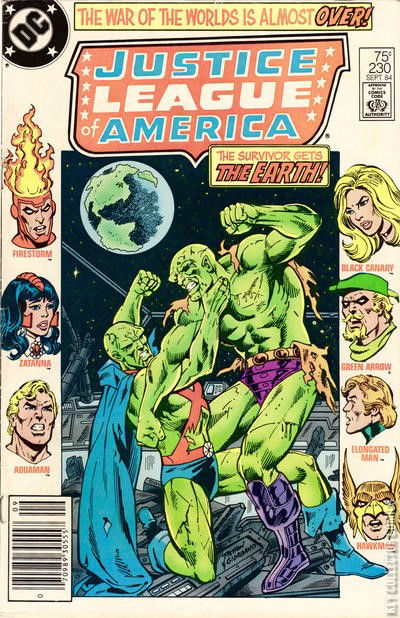 WAR OF THE WORLDS, 1984 PART 3 - BLESSED IS THE PEACEMAKER The Martian Manhunter flees the ruins of the Justice League satellite. The Marshal's men pick him up on their image scanners and alert their leader that J'onn is heading their way. On Earth, President Reagan confers with Soviet leaders as well as the U.N. Secretary General with regards to implementing nuclear options to repel the Martian fleet. Martian warships continue to blockade Earth's orbit. They engage Hawkman and Hawkwoman and open fire on their Thanagarian ship. The Hawks engage the ship's cloaking device, giving the illusion that they were destroyed in the crossfire. They reappear outside the perimeter of the blockade and open fire on the enemy ships. Meanwhile, Martian scouts board the Justice League satellite. Black Canary and the Elongated Man fight them off, and Zatanna uses her magic to electrocute the remaining troops. Firestorm flies off to find the Martian Manhunter. On the Marshal's ship, the Martian Manhunter lands his craft and finds his old lover, J'en. J'en is under orders to kill the Manhunter, but cannot bring herself to open fire on him. The Manhunter heads to the command bridge where he challenges the Marshal in a trial by combat. He wins the fight, and the Marshal loses face before his underlings. J'onn convinces the remainder of the fleet to agree to a cease-fire, and they leave Earth's orbit to return to Mars II. J'onn however, elects to stay behind.