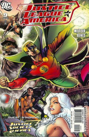 "The Lightning Saga Part 3: Suicide" The JLA and the JSA have already found four Legionnaires. Yet they don't know why the members of the Legion are here. Nonetheless, Dream Girl has prophesied that one of them will die. Mister Terrific analyzes Wildfire's belt, but his tests find nothing unusual. In the meantime, Batman tries to interrogate the Legionnaires stealthily. He admits aloud he can't believe they were randomly thrown across the globe. The Flash (Jay Garrick), Green Lantern (Hal Jordan), Vixen and Wildcat have tracked down another Ring to Gorilla City. There they find Timber Wolf. Once he hears the triggeword, Timber Wolf recovers his memories and desires to go back with his team. Power Girl, Red Arrow, Hawkman and Hawkwoman have headed to Thanagar in order to find another missing Legionnaire. The two male heroes find the whole quest highly suspicious and are sure the JLA and the JSA will come to blows with the Legion before it's over. The group track the Ring down. To her surprise, Dawnstar has already left. She felt she was needed back on Earth and entrusted her Ring to a Thanagarian friend. Dawnstar's friend hands over the Ring and the group sails back Earth. In the League's Headquarters, Timber Wolf rejoins his teammates. Londo asks the 21st century heroes excuse them for a moment. Black Canary and Mr. Terrific intend to spy on them, but the Legion Flight Rings start to glow and scramble the base's comm systems. Once they have ensured their privacy, Dream Girl explains about her vision. Timber Wolf picks up Wildfire's belt, removes two small cylinders and extends them, revealing they're lightning rods similar to those the Legionnaires used in the past to bring Lightning Lad back.[1] Dawnstar arrives, and the seven Legionnaires reveal their mission. They've gone back in time to bring someone back... even though one of them will surely die.