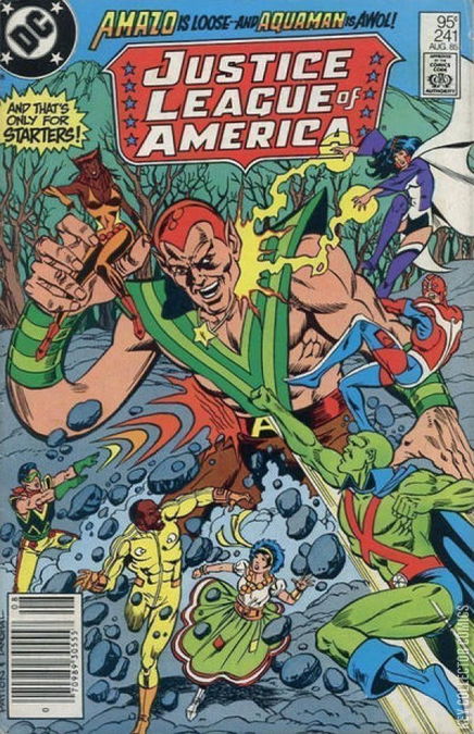 SEA CHANGE Amazo escapes from Superman's Arctic Fortress of Solitude, and appears in the Yukon town of St. Jude, where he absorbs the being and personality of a bitter former prospector named "Slick" Jake MacGregor. The man's hatred for the town, whose inhabitants he holds responsible for his lack of success, causes him to use his new powers to wipe out all but six of its people. Meanwhile, Aquaman has left Detroit to find Mera, while Hank finally asks Paco if he can date his sister. Vibe adopts a new costume, and J'onn J'onzz brings news of Amazo's northern rampage, whereupon the team departs for the Yukon timberland to seek out the android menace. The Martian Manhunter takes charge in Aquaman's absence and sends the team searching in different directions. He and Dale Gunn are then the first to be attacked by Amazo.