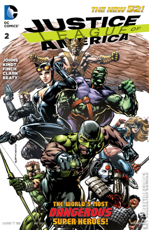WORLD'S MOST DANGEROUS PART 2 Somewhere, The Scarecrow finds himself seated on a chair in an empty room, with only the memory of an explosion as he was being taken to Arkham Asylum. He is greeted by a strange man in a purple suit, who explains that he engineered the escape, and that he intends to keep looking out for Crane - if he will agree to answer his call without question. He promises that by joining him, Crane will experience fear such as he never has before - and that, after all, is what Crane desires most. Meanwhile, at A.R.G.U.S., Green Arrow has returned from his last mission with grave injuries. Before passing out, he had mentioned that the group he had managed to infiltrate on his mission called themselves the Secret Society. Amanda Waller commands Steve Trevor to have the new Justice League of America track down and dismantle this Secret Society, despite his concerns that he has not even begun training them. Waller responds that this mission will be their training. When he questions her judgment, sending an inexperienced team after a group they know virtually nothing about, she responds that the world has changed since she was a field agent, and gives him just 15 minutes to prepare his team for their press conference, and another 15 minutes to brief them on their mission. Elsewhere, Vibe has arrived early at A.R.G.U.S., and is overwhelmed by the pressure of being asked to join the team when he has almost no experience whatsoever. His call with his brother Dante is interrupted by the arrival of the beautiful young Stargirl, who makes him nervous by her presence alone. They are joined soon after by Martian Manhunter and Katana, and then Catwoman and Hawkman. The latter makes Vibe uncomfortable, as he is covered in blood, which he insists is not his. Soon, Trevor arrives, and explains that they will all be meeting with the president soon, with Stargirl as their spokesperson - all except for Catwoman, whose criminal record has not yet been fully wiped, and as such, she must remain an unofficial member of the team. The absent Green Lantern, meanwhile, is off-planet, and will not be joining them either. As they leave, Trevor warns Catwoman to be good while they're gone, and in response, she kisses him on the mouth - for luck, she claims. Annoyed, Trevor warns her not to do it again, while she simply smirks. Unbeknownst to him, she stole his wallet, and inside it, she finds a photo of him with Wonder Woman. The photo reminds her that while Wonder Woman ended her relationship with Trevor, Batman had similarly warned her that their relationship would never work, either. From his mansion, the man who saved the Scarecrow watches the JLA's meeting with the president, in which Stargirl's speech centers around the story of American hero John Chapman - aka Johnny Appleseed. He is interrupted by a call from Professor Ivo, explaining that Scarecrow has been returned to Gotham, but the intruder at the mansion - the disguised Green Arrow - managed to escape. Later, Steve has the Martian Manhunter enter Green Arrow's subconscious to retrieve what information they can about the Secret Society. Oliver's subconscious tries to fight him at first, but eventually he manages to access the memories. Oliver had taken on a disguise, posing as a criminal. Someone had been searching for the perfect thief for an impossible job, and he had presented himself as the candidate for that job. He was kidnapped and greeted by a strange man in an empty room. Using a hidden arrowhead, he managed to escape his bonds and ran, but he was attacked by the Justice League, who seemed as though they were made of metal. Oliver wakes to find Steve Trevor standing over him, having overheard Steve say the word "team." Steve explains that while they had intended to work this job together - and alone - it has become bigger than the pair of them, and Trevor has called in a full team. Unfortunately, Oliver cannot be a part of that team; all spots are full. Collapsing back against his pillow, Oliver claims that Steve has sold out. Leading the team through the Kielder Forest, Steve tries to retrace Oliver's footsteps. While wandering the woods, Katana goes missing, and Martian Manhunter is unable to find her. Something is blocking his telepathy. Before long, Steve finds a lasso tightening around his neck. Batman, Superman and Wonder Woman are there, and they warn that the JLA should not have come there. SECURITY DETAIL Since the discovery of Superman's existence, new ways have had to be developed to secure the White House against threats - be they super-human or otherwise. Several new measures have been put in place to weed out super-powered would-be assassins. So, it stands to reason that there should have been no way for one man to get all the way to the oval office, and pull a gun on the president. However, while Amanda Waller is having difficulties convincing the president of the value of a new Justice League of America, one man saw fit to help the gunman get past security. As the man surprises the president in his office, suddenly, Martian Manhunter drops his human disguise and kills the gunman. Turning to the president, he warns that these security measures are not enough; that the US government needs the Justice League of America. At that, the president concedes, and endorses the new team's creation.