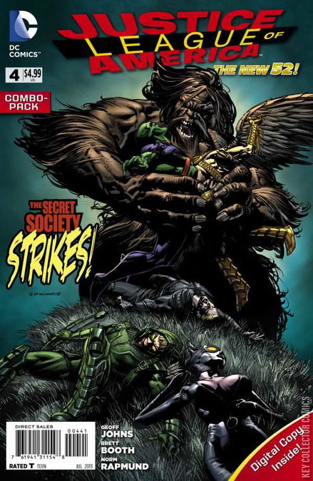 WORLD'S MOST DANGEROUS CHAPTER FOUR - THE GOOD, THE BAD, AND THE SHAGGY Despite having promised his wife that these late night calls would stop, Arthur Light is wakened from his sleep by a call from Amanda Waller, who requires that he come in to work at A.R.G.U.S. Elsewhere, Catwoman has got herself an audience with the so-called Secret Society. Unfortunately, that entails being strapped to a chair in a bare room with concrete walls and no windows. Despite the plan to sit tight, and see what happens, she impulsively escapes from the straps and picks the lock on the door. Meanwhile, Steve Trevor and Waller have Dr. Light in to examine what appears to be a modified silver dollar inscribed with Latin phrases. On one side, it says "Let them hate as long as they fear," while on the other, it says "Forever Evil." Despite the cryptic motto, the object also appears to be some kind of communication device. Oliver Queen had seen Multiplex using it to talk to somebody. The object appears to be emitting a frequency for which there must have been a loophole, given that all other communications in the Kielder Forest were blocked. So, it must be a special communication device for the Society. However, the frequency may be biological or alien. At the JLA Hangar, Steve introduces the team to their new mode of transportation: the Invisible Jet. Once in the air, Waller relays that the frequency - and Catwoman - have been isolated in the Superior National Forest in Minnesota. Meanwhile, Stargirl is slated to give a battery of radio interviews as PR for the team - but she has chosen instead to stow away on the jet. In the national park, the JLA follows Catwoman's signal to the Society's mansion, which has somehow transported itself from England to Minnesota. Katana slices the door in half, and they all creep inside, with Stargirl following secretly. Vibe senses some extradimensional technology within the mansion, and they soon discover that it is more of the robotic Justice League that Professor Ivo designed. Meanwhile, Catwoman is interrupted in her explorations by Ivo himself, who is badly disfigured after he allowed S.T.A.R. Labs to think he died in an explosion. He will not tell her what he is currently working on, simply inviting her to meet their leader in the banquet hall. Rather than go with him, she knocks him unconscious, only to be caught moments later by Copperhead, and strangled into unconsciousness. The JLA, meanwhile, is suddenly attacked by the monstrous Shaggy Man, and they do not fare very well. Catwoman wakes strapped to the chair again, with a pale man clad in purple standing in front of her. He demands to know what she and her friends are doing there. He is aware of the JLA's encounter with the Shaggyman, and Dr. Light's attempts to access their communication systems. He warns that Light is about to receive an unpleasant call. As Dr. Light begins hearing a voice from the object, the pale man puts a gun to Catwoman's head, and orders her to start talking. Instead, she warns that if he kills her, the Batman will stop at nothing to find them. This, however, is exactly what the society wants. Dr. Light is suddenly knocked back by a burst of light, just as the pale man pulls the trigger, leaving Catwoman dead on the floor of the concrete room. TRIAL BY FIRE In combat with the Shaggy Man, Martian Manhunter is faced with his greatest fear - fire. Though his body is invulnerable, even to flames, his psyche is not at all. However, it was not always that way. Long ago, he had completed the Test of State - killing the most deadly beast on Phobos - and was set to return to Mars as the leader of his people. The old leader was dying, but his memories would be recorded and collected; passed on to the next leader. The people of Mars were all connected by their telepathic collective consciousness, but in order to perform The Test of State, J'onn had had to disconnect himself from it, temporarily. Unfortunately, upon his return to Mars, he found that he would never feel that connection again. In his absence, Mars had been burned and destroyed, with no lives spared. Though the memories of his predecessor would not be passed on to him, one alien concept was imprinted upon him that day: Man. He had never heard the word before, but he knew that man was responsible. The reason that fire hurts J'onn now is guilt. He feels that he should not have survived where all of his people had died. He should never have been the last Martian.