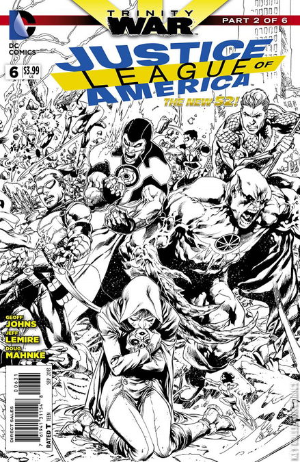 TRINITY WAR, PART TWO For centuries, The Question has been seeking answers to questions. Foremost in his mind is the question of who he really is. He believes that if, one day, he answers enough questions, the answer to that question will be given to him. Until then, though, he is the man without a face. For now, though, he must answer a different question: "Who is the evil behind the evil?" Meanwhile, in Kahndaq, the Justice League of America stands in disbelief having just watched as Superman killed Dr. Light, their newest member. Hurriedly, Steve Trevor warns that the need to neutralize the rest of the Justice League, then deal with Superman. Unfortunately, neither side is particularly enamored with the idea of fighting the other, but they are compelled to do so, whether in self-defenses or in service of their country. As the battle becomes more heated, Superman himself struggles to keep his eyes shut to prevent further bursts of uncontrollable heat-vision, begging everyone to stop fighting and just lock him up. Finally, everyone stands around him silently, until Trevor decides that it's time to bring Superman in. Later, Trevor returns to A.R.G.U.S. to report back to Director Waller, who still doubts that Superman would kill a man, despite the fact that her entire team saw it. Still, she sees Superman's loss of control as an opportunity for the JLA. If Superman cannot be controlled, then the Justice League cannot be controlled, and it will be up to the JLA to take them all down. Warily, Steve worries that Waller might have orchestrated this scenario. In the A.R.G.U.S. medical wing, both teams are receiving required medical attention, and nobody really believes that Superman killed Dr. Light on purpose. Meanwhile, Shazam is eager to leave, given that he is a member of neither league. The Atom's guilt at her betrayal fills her with a need to come clean about what she did, but Batman is too busy to listen. Amanda Waller offers her ear, after she has a word with Firestorm. Taking him aside, she asks him if he can make Kryptonite. Meanwhile, Steve leads Wonder Woman to see Superman, explaining that Waller wants to keep him there while they run tests. Diana is not impressed with Steve's involvement with the other Justice League. She hoped that if they were still friends, he might have told her about it, rather than revealing the JLA through a press conference. She notes that a man is dead because Steve and his government could not trust the Justice League enough to talk to them. And Superman will never forgive himself for that mistake. Batman stands watch over Superman, who has been locked down in a super-power suppressing device. Superman hasn't stopped coughing since they arrived, and Batman is unsure whether it is a physical or psychological ailment. Clark begs to know who he killed. Bruce explains that Dr. Light was a scientist at A.R.G.U.S. until an accident gave him the ability to manipulate energy. At the time of their encounter, Light had not fully learned to control his abilities, and because of Superman's physiological dependency on solar energy, their proximity could have accidentally triggered a release of that energy. The Martian Manhunter and Cyborg have been allowed to preside over the autopsy together, to see what they can learn about the incident. Clark is more concerned about whether Arthur Light had a family. Reluctantly, Bruce admits that he had a wife and three daughters. Clark bites his lip. Arriving, Diana angrily demands to know why Bruce would tell him something that would hurt him like that. She ignores his non-response and explains that what happened had nothing to do with Dr. Light and everything to do with the encounter they had with Pandora's Box earlier. Bruce doesn't believe in the myth of Pandora's Box, believing that man chooses to be evil, and insists that they pursue this all scientifically. Diana is sure that she is right, and decides to pursue her angle only. Wonder Woman seeks out her cousin Hephaestus, the blacksmith god, and wrapping her lasso 'round his neck, she demands to know just what Pandora's box really is, and what it does. Despite his having been a friend to her in the past, Diana insists that right now, she needs the truth, and she needs it immediately. She knows he forged the box. He responds, however, under the influence of the lasso, that he did not forge it - and that it is not what she thinks it is. He explains that there are other magics in the world, beyond those of the Gods of Olympus. When they had tried to control the box, they had used Pandora to open it, because they were scared of it. As she leaves, he warns her that she would do best to destroy the box, rather than trying to unravel its mysteries. Finding not much help from either Gods or science, Diana turns to magic itself; she turns to the Justice League Dark. At A.R.G.U.S. Headquarters, Superman is freed of his restraints by a man who resembles Steve Trevor. Superman protests that it is not safe to free him, but the man responds that he knows Superman is not a killer, and reveals that he is not Steve Trevor. He is the Question, and he hopes to help Superman find out who really killed Dr. Light.