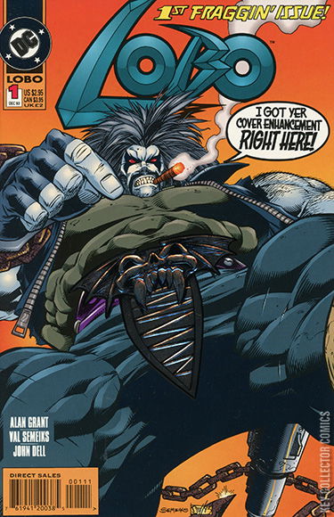 In space, no one can hear you frag. By popular demand, Lobo hits the comic shops in his very own ongoing monthly series, without a 'Suggested for Mature Readers' label! Now everyone can get in on the action and fun month after month. It's the Lobo series you've been clamoring for - an action-packed fragfest, brimming over with good-natured gratuitous violence and twisted humor. The series gets under way with Lobo out on a typically destructive night on the town. What follows is a stop at Al's Diner for a few brews with some appalling violence, and then a trip to the local bounty office where the Main Man takes an assignment to bring in Qigly, the universe's most feared, loathed and powerful...accountant. Things take an ugly turn when Lobo meets heavy opposition from the Dead Boys, a bunch of bastiches with their own reasons for holding onto Qigly.