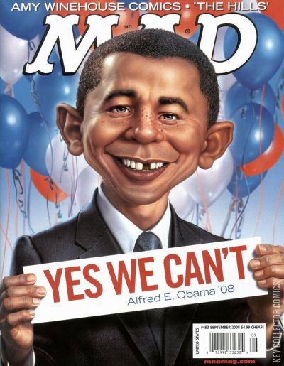 Our newest issue is a mandate for four dollars and change – including special posters of both McCain and Obama! Elect to buy the latest issue and you'll also get our spoofs of Indiana Jones and the Kingdom the Crystal Skull and Prince Caspian! I Plus outtakes from The Hills, I our parody of Now That's What I Call Music! I and our brand-new Amy Winehouse comic strip "Amy"! And let's not forget, Spy vs. Spy, What the Heck is the Difference?, the Fold-In, Planet Tad and much more! Remember MAD #493 – buy it early, and buy it often!