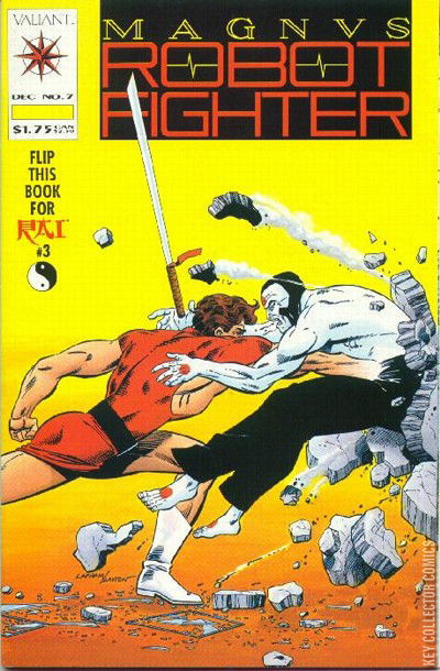Special “Flip” issue in which one side has a Magnus cover and story, then you flip the comic and the other side has a Rai cover and story. With grandmother “killed,” Magnus, Rai and 1-A work to find a way to bring her back to life as the invading alien force approaches and Rai seeks to save his son which brings him into a conflict with Magnus in “Invasion Part Five – The Ballad of East and West” and “Invasion Part Six – Small Sacrifice”Rai attacks the man he thinks killed Grandmother- - Magnus! But, Magnus shows him that an alien weapon felled Grandmother, so Rai departs to find his son in the chaos. When 1-A arrives, Magnus attempts a desperate plan to revive Grandmother by implanting 1-A's core within her body. The two Freewill minds combine, and Grand-One is born!...