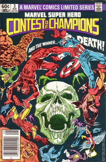The third part of the Contest begin with Wolverine, Thing and Peregrine versus Angel, Vanguard and Black Panther. They all split up and decide to look after the object alone. Wolverine finds Black Panther and tries to kill him even it's being only a game. Peregrine attacks Angel with incredible fighting skills in the air, while Thing starts a fight with Vanguard who has the power to deflect any kind of power used against him. Angel manages to get a stick from a village and then defeats Peregrine. Thing splits Vanguard from his weapons that give him his powers and then can defeat him with a punch. Then Thing argues with Wolverine about using lethal attacks, even they being in the same team. At the end Wolverine and Black Panther smell the prize, and Thing grabs it from the ground. The Grandmaster wins one more 2-1.The last part begins in a jungle in South America, with the Grandmaster team formed by Sasquatch, Captain America and Blitzkrieg, and the unknown team Storm, Shamrock and Collective Man. Again they split up and start search for the prize alone. Blitzkrieg finds Storm and tries to use his lightning powers against her, but she manipulates his lights and the wind against him. Captain America battles Shamrock, but she uses her incredible luck to escape. Sasquatch fights Collective Man and easily grabs him, but then he uses the power of ten thousand Chinese to punch Sasquatch away. At the end Blitzkrieg works with Captain America and they find the prize together, but Shamrock has the luck to grab it just next to her position. Grandmaster wins again 3-1.All the heroes come back to the planet where the Contest had begun. While the strange starts to talk, Iron Man, Thing, Wolverine and Talisman sense something wrong about this bet. Talisman enters his dream dimension and ask to Invisible Woman to investigate the Strange. When Susan removes its hood, it's Death herself! Death reveals her plans to the Grandmaster - he has to die in exchange for his brother's life. Then...