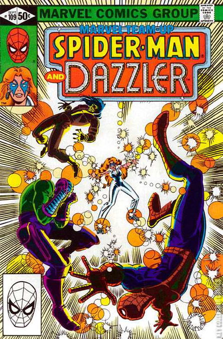 CRITICAL MASS! Thermo the Thermatronic Man feels his bio-electric power increase as he grips Spider-Man around the throat and drains his body heat. Spider-Man sinks onto the rubble of the theater wall that Thermo just slammed him into — the very theater where Dazzler performs her stage act. Across the street, Paladin slowly regains consciousness after having been smashed through a plate-glass window by Thermo. Only the armor in his costume kept him from being killed. Suddenly, Thermo is distracted by a brilliant light display, and he lets go of Spider-Man to face Dazzler.   Having heard the commotion and gone outside, Dazzler uses her mutant ability to temporarily blind the Thermatronic Man. Then, Spider-Man's recuperative powers quickly restore some of his strength, and he manages to stagger Thermo with a punch to the back. At the same time, Paladin shoots Thermo with his nullifier. Although the weapon again fails to knock him out, Thermo is so overwhelmed by the triple attack that he runs away down an alley. Hurling a trailer truck between himself and the pursuing Spider-Man and Paladin, he vows to return to crush them. Then, he leaps over a fence and escapes. When Paladin sees the gorgeous Dazzler, his eyes light up. However, they hear police sirens, so they quickly carry Spider-Man to Dazzler's nearby apartment.   As they climb the stairs, Stella, a tenant, sees them and complains to Harry, her husband, about the wildlife that the "new young lady" seems to lead. Soon, Spider-Man is huddled under a blanket, and Dazzler, now out of costume as Alison Blaire, serves him a cup of tea to warm him up. Paladin removes his helmet before joining them, and Alison asks him what the battle was all about. Paladin reviews Thermo's origin and explains that he is working for Thermo's wife, Christine Michaels. Thermo murdered his onetime friend and assistant, Dr. Paul Bradshaw, continues Paladin, and now the "maniac" is on the loose.   When Paladin finishes, he tosses Spider-Man the nullifier and prepares to leave. Offering sometime soon to "find more pleasant things to discuss, in candlelight at Regine's," Paladin bids Dazzler farewell. They should all rendezvous at Christine's laboratory tonight, he says as he goes through the door, and resume tracking Thermo down. Then, Spider-Man tries to web-swing out of the apartment, but his clouded vision and unsteady hands render his web-shooters useless. Alison catches him before he falls out of the window, and as he collects his wits, he hopes that Thermo has not destroyed his spider-powers permanently. Dazzler turns on her stereo and converts some of the soft music into a soothing light to calm Spider-Man and ease his tensions.   Meanwhile, Thermo finds an abandoned building to use as a hideout and smashes through the wall; however, he hears voices and soon discovers a room where a cloaked and hooded figure is leading a group of cultists in a peculiar chant. The cult leader knows that his incantation is a complete sham used to dupe his followers. As he pretends to call forth a demon named Yogoth, Thermo suddenly enters.   At first, the cultists protest that he is a lunatic, but when he demonstrates his bio-electric blasts, they become silent. The leader realizes that Thermo is a deranged person with some kind of super-human power, but he goes along with him, thinking he might prove useful. Then, Thermo starts to harangue the "worshipers," telling them that they will be the core of a new movement that will sweep the entire planet.   As dawn breaks over the city, Spider-Man awakens in Alison's apartment to the aroma of coffee and scrambled eggs. Except for some muscular pain, he is completely recovered, and he thanks her profusely for her help. When he sees a portrait of her parents on the wall, he asks about them, but she is unwilling to discuss them. Suddenly, she shrieks, and Spider-Man, startled, leaps onto the wall. She points to something crawling on the floor, but Spider-Man sees that it is just one of his spider-tracers and begins to chuckle. She tells him to eat his breakfast.   Spider-Man soon web-swings out over the city and notices that his balance and agility are still not quite perfect. Fortunately, as it is Sunday, he is not expected at the Bugle or at the university, so he decides to take it easy and save his strength for the upcoming battle against Thermo. Meanwhile, at the Bugle, J. Jonah Jameson discusses the Spider-Man menace feature in the day's edition with his editor Joe Robertson. Robertson says that the public generally discounts his anti-Spider-Man editorials now and that the newspaper could "come up with egg on its face" by insisting that Spider-Man is the Street Stalker. Jameson appreciates Robertson's caution, but he remains firmly convinced that they have Spider-Man dead to rights. Just then, Lance Bannon enters, and Robertson is reminded that this ambitious photographer means to have Peter Parker's job at the Bugle.   Peter, meanwhile, returns to his apartment to study the nullifier that Paladin gave him, wondering why it had no effect on Thermo. Since his powers cannot yet be relied on, he hopes to find a way to increase the device's power. Elsewhere in the city, Thermo continues to captivate to the cultists, promising to transform them into an invincible army. One of them finally declares that Thermo is a fraud, but Thermo causes him to die in screaming pain. This quickly convinces the others, and they bow down in worship. Then, he says that he has a mission for them.   That night, as Christine Michaels is in her laboratory contemplating what to do if Spider-Man and Paladin cannot stop her deranged husband, a group of cultists break-in. With fanatic urgency, they kidnap her and carry the microwave chamber that created Thermo into a waiting truck. Across town, Dazzler finishes her performance to a most appreciative audience and heads for her dressing room. Among the attendees, however, is the cult leader hi