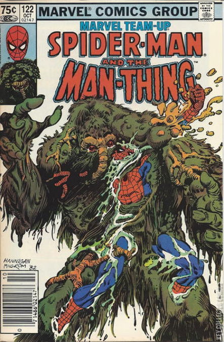 A SIMPLE TWIST OF ... FATE The Man-Thing shambles across his homes in the Florida Everglades when suddenly his attention is drawn to a mystical portal that suddenly opens. Emerging from it is the mystic known as Ian Fate. Fate notices the Man-Thing and senses the creature's pain. Feeling sorry for the muck monster, Fate encourages it to follow him while he tells it his story. He tells the Man-Thing how he was a journalist who was devoted to his family until they were killed in a car bomb set by a mercenary as Eric Payne. Seeking revenge, Fate began studying black magic. Eventually, he learned that Payne was operating as the costumed hero known as Devil-Slayer. He used his magical powers to try and destroy his foe but was defeated by his allies the Defenders. Fate explains that he feigned insanity and when Doctor Strange turned him over to a psychiatrist he bided his time until mystical forces are in alignment were in their proper place to use his powers to escape. His thoughts muddled, Ian decides that he will use his power to end the suffering. Seeing a kindred spirit in the Man-Thing he takes the muck monster along with him on his quest to set mankind free. Meanwhile in New York, at the offices of the Daily Bugle, Peter Parker is selling photos of the elderly for a Daily Bugle piece on the plight of the elderly in the city. While Joe Robertson is impressed with Peter's photos and concept, J. Jonah Jameson is skeptical until he takes a look at the photos himself. Satisfied with the work, Jameson tells Joe to write up Peter a voucher for the shots. Shortly, Peter is walking down the street, completely preoccupied with the amount of money he just made that he doesn't notice a crosswalk changing. Peter is almost hit by a car but his spider-sense warns him quickly enough to allow him to jump out of the way. This is witnessed by many people on the street. Realizing that he is about to blow his secret identity, Peter bolts off before anyone can get a good look at his face. Around the corner, he runs into Ian Fate and the Man-Thing (disguised in clothing). Fate asks Parker where the Daily Bugle building is located and Peter sends them in the right direction. He finds the pair odd, but not all that strange for New York. That is until he sees that the brute accompanying Fate is leaving a trail of slime in his wake. With his spider-sense tingling, Peter decides to check it out. He slips into a nearby restaurant washroom to change into Spider-Man and follow after them. At that moment, Ian Fate and the Man-Thing are in the Bulge offices looking for J. Jonah Jameson. At first, Jameson brushes off the visitor until he recognizes Ian Fate due to his past career as a reporter and welcomes him in with open arms. When Jonah asks Ian what he can do, Fate asks for help on his latest project. He then uses his magical powers to reveal the Man-Thing's true form, causing the Daily Bugle staff to panic. The collective fear puts the Man-Thing into a frenzy, but Fate protects the Bugle staffers from the Man-Thing's burning touch with mystical shields. It's at this point that Spider-Man arrives and peeks through a nearby window. He is confused seeing the Man-Thing with Ian Fate but decides to wait and see what is going on. Ian asks Jonah to let him use the Daily Bugle's media platform to help ease the suffering in the world, as the medium has brought so much suffering in the past. Jonah wishes he could help but thinks that Ian needs help. He explains that a newspaper reports what is, not what could be and to do what Fate asks would compromise his journalistic integrity. Seeing this as yet another betrayal, Fate strikes Jameson, prompting Spider-Man to intervene. Fate strikes back with a mystical bolt that the wall-crawler easily dodges. When he fires some webbing at Fate, the villain blocks these with a mystical shield. By this point, Fate's rage has upset the Man-Thing enough for the muck monster to grab him. Ian reacts to this in fear, causing him to burn at the Man-Thing's touch. Not wanting Fate to die, Spider-Man leaps in to try and stop the Man-Thing, but cannot get a good hold on the muck monster. Eventually, Ian passes out from the pain and the Man-Thing turns his attention to the fearful emotions coming from J. Jonah Jameson. Spider-Man leaps at the creature, knocking both of them out of the nearby window. As they fall to the street below, Spider-Man discovers that his hands are stuck within the creature. He finally manages to pull his hands free and stop his fall from a web-line as the Man-Thing strikes the street below. On the ground, Spider-Man watches in a surprise as the Man-Thing reforms and starts to shamble away. However, the creature becomes a threat again when the people on the street start to react to the monster in fear. Spider-Man leaps in to stop him and the Man-Thing fights back on instinct. As Spider-Man fights a losing battle in the streets, Ian Fate laments over his over his inability to teach people to renounce suffering. Jameson talks sense into his former colleague, pointing out that he isn't the same man that people regarded so highly when he was a reporter, including his late wife and child. What really drives this home is when Ian sees the photos that Peter Parker took and realizes that he has caused great wrongs. First he frees the Daily Bugle staffers and then heads down to the street below to right the wrongs he committed against the Man-Thing. On the streets, the muck-monster has defeated Spider-Man just as the NYPD arrive on the scene. The creature fights back against the cops, but Spider-Man pulls them to safety. He then uses all his remaining strength to fight the Man-Thing, breaking the creature apart as it weakens the longer it is away from its native swamp. Thinking that he destroyed the Man-Thing, Spider-Man watches as Ian Fate teleports the monster away before he passes out from exhaustion. However, the Man-Thing has survived as Fate brought the creature back to its nat