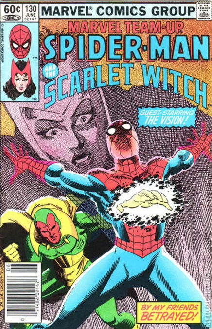'TILL DEATH DO US PART! In Leonia, New Jersey, the Scarlet Witch wakes up in her bed screaming. Once she is fully awake, she notices that her husband, the Vision, is not in bed with her and begins looking around the house for him. The Vision returns home shortly after and comforts his troubled wife. She tells him that she had a horrible dream where someone attacked him. When the attacker stepped out of the shadows, she was shocked to discover that it was herself. The Vision assures her that it was only a dream and suggests that they go out for a walk to ease her mind. However, once they are outside, Wanda notices the shadows are reaching to her. Despite her efforts to ward off these specters with her hex bolts, but she is enveloped in darkness. She is pulled into a formless realm, where she is mocked by the man who appears to be her husband. However, it is not the Vision at all, the attacker suddenly changes back to his true form, that of the sorcerer known as Necrodamus. The real Vision is out in New Hampshire with Spider-Man, following their clash with the android known as Alpha. Spider-Man is coming around and is filled in on what happened by the Vision and Daily Bugle reporter Arthur Pauncholito. Paucholito is surprised that Spider-Man knows him by name. The wall-crawler explains that he keeps track of the Daily Bugle's reporters since they write so many negative stories about him. As he leaves, Arthur mentions that he lost track of his photographer, Peter Parker, and asks the wall-crawler to tell him that he finally found that big story he needs to make before he retires. As Spider-Man swings away, he realizes that Arthur has figured out his double identity and tries to figure out what to do next. Suddenly, bolts of lightning come out of the sky and begin striking near Arthur and the Vision. Spider-Man swings back and pulls Paucholito to safety. The Vision tells Spider-Man to turn his attention to the sky where they see Necrodamus holding the unconscious body of the Scarlet Witch. The Vision demands to know what the mystic has done with his wife. Necrodamus explains that he is a practitioner of the dark arts and loyal to the Dark Gods. He recounts his past failures against the Defenders as well as the time that the Scarlet Witch bested him with her powers. He explains during this last encounter his body was lost in a mystical void until recently. He has now decided to take revenge against the Scarlet Witch by taking a new body, that of the Witch's wife, the Vision. When Spider-Man and the Vision are prepared to attack, Necrodamus encases the Scarlet Witch in a mystical green sphere that will destroy her if the Vision doesn't surrender. Spider-Man tries to attack the evil sorcerer, but his blows do nothing. With no apparent way to stop their foe, the Vision surrenders himself to Necrodamus in order to save the life of his wife. Necrodameus then casts a spell that transfers his life essence into the Vision's android body, causing his frail form apparently takes on the Vision's essence and it falls to the ground. With the transfer complete, Necrodameus frees the Scarlet Witch as she is of no use to him any longer. He then uses the Vision's heat rays to incinerate his old body, having no use for it either. Thinking that Necrodamus murdered the Vision, Spider-Man lashes out at him, but the density of the Vision's body is strong enough to withstand the wall-crawler's blows. Making himself intangible, Necrodamus rams his fist through Spider-Man's chest, knocking him out again. With his foe defeated, Necrodamus flies into the air, seeking to take over the entire world. Shortly, when both Spider-Man and the Scarlet Witch revive, everything is explained to the Witch. Upon learning what happened, the Scarlet Witch grimly tells Spider-Man and Arthur that the only way to stop Necrodamus is to destroy the Vision's body. Meanwhile, Necrodamus has flown to the city of Concord where he uses the Vision's body to go on a rampage to test out his new abilities. The authorities are no match for Necrodamus who easily bats them aside. Soon, Spider-Man and the Scarlet Witch arrive along with Arthur in his car. Seeing the carnage unfolding, Spider-Man asks if there is no other way to stop Necrodamus, however, the Scarlet Witch doesn't believe so. As Wanda gets out of the car, Arthur makes a veiled threat about revealing Spider-Man's double identity. The wall-crawler can't believe that Arthur could be so cold-hearted when lives are at stake. The web-slinger joins the Scarlet Witch, and while she distracts the Vision with a hex bolt, Spider-Man goes in with fists flying. As the battle rages, Arthur watches from the sideline. Spotting a small dog in danger, Arthur selflessly grabs the dog and carries it to safety. By this point, Necrodemus has overpowered Spider-Man and is about to kill him. Seeing this, Arthur calls out to Wanda to do something. She is frozen in place at odds with the idea of destroying the body of her husband, but ultimately she unleashes a powerful hex bolt. It strikes Necrodameus, and he falls to the ground shrieking. However, this is only a ruse to allow the Scarlet Witch to get close enough for Necrodameus to grab her by the throat. However, he cannot bring himself to kill the Witch. Arthur realizes what is going on and tells Necrodameus that the Vision's mind is still inside his body and is fighting his influence. Spider-Man manages to get up and begins attacking Necrodamus again. This time, the sorcerer's essence is forced out of the Vision's body. The only form nearby is that of the little dog, but Necrodameus refuses to live his life in such a small body and his essence dissipates into nothingness. While the Vision and the Scarlet Witch have a happy reunion, Spider-Man wonders what he will do about Arthur Pauncholito. Back in New York, Peter Parker pays a visit to Arthur and finds him packing a bag. Arthur explains that he filed his last two stories with the Bugle and is taking his va