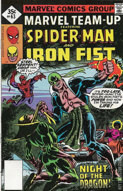 NIGHT OF THE DRAGON Iron Fist is going through a training exercise to be in top shape following his encounters with the Steel Serpent. However, he has to stop and change to his civilian guise of Danny Rand when Peter Parker shows up to do a photo spread of the Rand home for the Daily Bugle. Peter gives Danny a note that was left at his door, and when Danny reads that it's the Steel Serpent wanting to challenge him, he abruptly cancels the appointment. Peter, suspecting something is wrong, offers his aid but is rejected, but he decides to check things out as Spider-Man.�� While aboard the private ship of Bushmaster, Misty Knight continues her undercover job trying to topple his enterprise. However, she is forced to blow her cover when she learns that Bushmaster had paid Steel Serpent to eliminate Iron Fist. Learning that he is to be attacked at Inwood Park, she flees Bushmaster's ship to go and warn Danny of the danger.�� Meanwhile, Danny meets up with the Steel Serpent and the two battle in Inwood Park. Spider-Man, having tracked Iron Fist to the park with a spider-tracer, tries to help, but is easily beat aside by Steel Serpent.�� The Steel Serpent gains the upper hand and absorbs the very last of Iron Fist's Chi just as Misty arrives. She forces Steel Serpent to let Danny go at gunpoint. However, Steel Serpent, having succeeded in his task, finds his opponent not even worth slaying now that he has the power of the iron fist, and so he leaves the dying Iron Fist with Spider-Man and Misty.