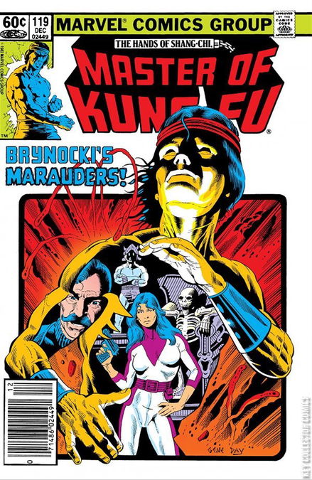 Brynocki, Mordillo's robot servant, pits his Ultra Men robots against Shang-Chi and Leiko.