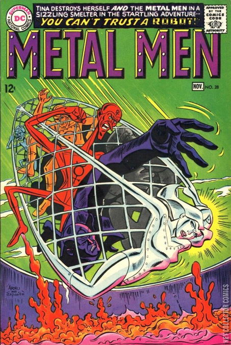 Home / DC / Metal Men / Metal Men #28 DC Released August 1967 Metal Men #28 Add to Collection Want It Synopsis No synopsis available. Issue 28 of 56 Add to Collection Buy it on eBay Buy on eBay Low $5 Mid $15 High $50 Synopsis No synopsis available. Details Series Metal Men Cover Date August 1967 Pages N/A UPC N/A Cover Price N/A Final Order Cutoff N/A Creators Inker Mike Esposito Artist Ross Andru Price Guide Log in or subscribe to access detailed graded price information and market insights. Log In Subscribe