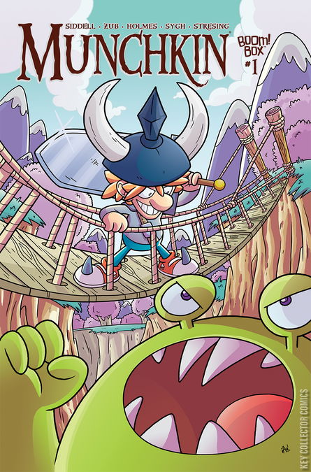 WHY WE LOVE IT: As longtime fans of the game, we're jazzed to weave stories out of the world of Munchkin, whether it's from the perspective of one Munchkin, a gang of them, or even one of the monsters that live behind the doors! WHY YOU'LL LOVE IT: Kick open the door. Kill the monster. Steal the treasure. Screw over everybody you come in contact with. Welcome to the world of Munchkin, a gathering of stories based on the popular game series. It's a laugh a minute, pal. Plus, every first printing of every issue will ship with an exclusive card for the game. WHAT IT'S ABOUT: Based on the immensely popular card game, Munchkin comes to comics! Munchkin takes place in a very flexible mashup of genres. Originally a satire of fantasy roleplaying, it has since then taken on nonfantasy and non-gaming elements. Characters in Munchkin change constantly but never permanently. What do Munchkins do? They play for the win. They are rules lawyers. They backstab. They gloat. They whine when someone else backstabs or gloats. Munchkins are emotional. Munchkins may be clever, but they are never wise. Munchkins have short attention spans. Munchkins may be brave in the face of awful odds, but they are even braver when beating up crippled goblins for their lunch money. If a Munchkin seems to show mercy, it's because he was bored or distracted. After all, even stomping an ant helps you level up.