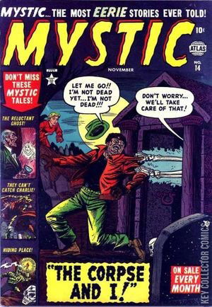 Home / Atlas / Mystic / Mystic #14 Atlas Released November 1952 Mystic #14 Add to Collection Want It Synopsis No synopsis available. Issue 14 of 61 Add to Collection Buy it on eBay Buy on eBay Low $45 Mid $130 High $435 Synopsis No synopsis available. Details Series Mystic Cover Date November 1952 Pages N/A UPC N/A Cover Price $0.10 Final Order Cutoff N/A Creators Artist Tony DiPreta Price Guide Log in or subscribe to access detailed graded price information and market insights. Log In Subscribe