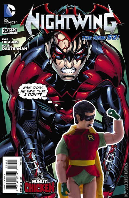 SAFETY NET Just hours ago, a little girl named Jen, whom Dick Grayson and his roommates had been babysitting, lost her parents to murder, and when she discovered his dual identity and begged him to bring her with him to search for her parents' killer, he had turned her down. Within minutes, she was gone, determined to find the killer by herself. He had turned her down because it was too dangerous. The killer, after all, was Victor Zsasz. Now that Dick and his friends have realized Jen is missing, he is determined to find her and get her home safe before anything happens. In a sparse apartment, Mister Zsasz carves two more marks into his arm, to represent Jen's parents. He is startled when he looks to his door and sees young Jen standing there, brandishing Eskrima sticks stolen from Nightwing. As she rushes at him, he merely swats her aside with the back of his hand, knocking her to the floor easily. Though he admires her spirit, he suggests that he's got plenty of room to add another mark for her next to her mom and dad's. Fortunately, Nightwing soon smashes through Zsasz' window in time to see him put his knife to Jen's throat. He explains that he'd put trackers in his Eskrima sticks, as he sends her hiding under the table, and grabs for one of the sticks to defend himself against Zsasz' sharp blade. Though it is difficult, he manages to land a kick at Zsasz' head, knocking him unconscious. Afterwards, Dick takes Jen up onto the roof, and explains how when he learned his parents had been murdered, he was consumed by the desire for revenge, but he'd found ways to contain it. As a defense mechanism, he had tried to avoid being defined by his tragedy by becoming someone stronger. For him, that meant trying on other personalities, like that of Robin. That was, until he found the right version of himself, which was Nightwing. Even though he'd found out who he wanted to be, things didn't turn out as Dick expected. His friends had changed just as much as he had in the time it took to find himself, and he had to wonder, somehow, if their change for the worse had been his fault; if he could have prevented it by doing something differently. It led him to question who he'd become, and what he might have been or should have been. What might have happened if he had been recruited to the Court of Owls, and become a Talon? What might his parents think of what he has done with his life? Would they feel he'd done enough? He had hoped to build a legacy in buying up Amusement Mile, but that opportunity was taken from him, and he had let the people who relied on him down. Tonight, though, he'd promised himself he wouldn't let Jen down. At last, he explains that the point of his story is that there is no easy path through grief. Things will be hard for her, and he doesn't want to give her false hope by saying it definitely will get easier. All the same, he decides to show her something. He presents the bracelet that he'd bought for his mother on the day she'd died, and asks Jen to hold onto it for him. He tells her that no matter how dark things should get for her, the bracelet should serve as a reminder that things won't always be that way. They can get better, like they did for him. Tearfully, she hugs him, and thanks him. He promises that she can call on him whenever she wants, and she sends her down to have breakfast with Joey before she is sent to her Aunt's. Before heading down, she turns and reminds Dick that his parents would be proud of him. Given hope by Jen, Dick decides that he can focus on the positive enough to give Sonia Branch another chance, texting her an invitation to dinner while he's visiting Gotham City for a few days. Standing and preparing to make his own way down for breakfast, Dick thinks on his life, and decides that it's not about all the trappings of being a vigilante in the Bat-family. His life, above all, is about catching people when they fall.