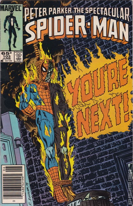 COMPULSION! Spider-Man is present for the interrogation of a university student named Barry. Declining to have a lawyer present, Barry tells Jean DeWolff what they had done was out of compulsion. He explains that he and his friends at Empire State University had grown bored with their academic pursuits and sought some form of amusement. It was all the idea of his classmate, Ashley Cranford, and insists that nobody was supposed to get hurt. He begins telling his story. Hearing all this so far makes Spider-Man think about how sloppy he has been getting if college kids could so closely connect Peter Parker with Spider-Man. Barry goes on to explain the next part of their plan, to create a non-existent super-villain to pit against Spider-Man. In the hospital,[Continuity 5] Captain DeWolff asks Barry why he made the effigy to look the way it was. Barry explains that it was to point out the connection between Spider-Man and the Daily Bugle. Spider-Man breaths a sigh of relief that these youths had not discovered his secret identity. That's when a nurse comes in to scold Jean DeWolff for smoking in the hospital. Spider-Man asks the nurse how Thomas is doing and she informs them that he has burns of 90% of his body. This causes Barry to choke up a bit, swearing to DeWolff and Spider-Man that they didn't intend for anyone to get hurt. That's when Ashley continues, explaining that they had no idea that someone would really take on the identity of Blaze. With their story done, Captain Jean DeWolff tells the two young men to go home, but to show up at the police station at 10 am the next morning with lawyers for formal charges. When Ashley and Barry leave, DeWolff asks Spider-Man if he is satisfied. He is, as is Thomas, who was not really injured at all but was wearing makeup to make it look like he was horribly burned. That's when "Blaze" comes out of hiding as well, he was actually the Human Torch in disguise. Jean DeWolff asks for the trio to fill in the blanks for her so she can understand what happened. Thomas explains that he decided to do something about the situation after he saw the Blaze video on the news. He approached Peter Parker and told him all about it in the hopes he can contact Spider-Man. Parker says he can't and suggests that Thomas try to get in touch with the Human Torch. Thomas then went to the Baxter Building, where he found both the Torch and Spider-Man.[Continuity 6] Spider-Man is furious and wants to teach the kids a lesson, but both Thomas and the Human Torch suggested a more subtle approach. That's when they put together the entire ruse to trick Ashley and Barry. After hearing all this, Jean DeWolff is furious to hear that they played such a prank, or that she went along with it and warns them against pulling a stunt like this again. Spider-Man points out that it was for a good cause because Ashley and Barry seemed to learn their lesson. However, Spider-Man wouldn't think so if he could hear Ashley assuring Barry that the police have nothing on them. On their way to the elevator, he tells Barry that, at worse, they would be charged with misdemeanors. As they enter the elevator, Ashley is already thinking of a new scheme, asking Barry if he knows just how well the president is protected...