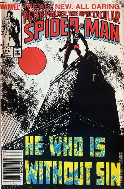 HE WHO IS WITHOUT SIN With the news of the murder of Reverend Bernard Finn at the hand of the Sin Eater, the news media asks the question, who will be the next victim? Among the dead include Captain Jean DeWolff, Judge Horace Rosenthal, as well as Hugo Kelsey, one of the innocent bystanders who was shot during Spider-Man's clash with Sin Eater. Hearing this, Peter Parker blames himself for leaping out of the way of Sin Eater's shotgun blast. He is talking on the phone to Detective Stan Carter on the phone as "Spider-Man" about the latest developments in the case. Carter is unimpressed when he sees Reverend Toliver is interviewed about the Sin Eater's activities. Also watching the news is Marla Jameson, wife of J. Jonah Jameson. She decides to call Betty Leeds to ask her to come and stay with her while Jonah is out of town as she doesn't feel safe being alone while the Sin Eater is on the loose. Also watching the news report is Reverent Toliver, who pats himself on the back for the speech he gave during his interview. Likewise is Emil Gregg, the man who frequently made confession with Reverend Finn. He hangs his head in his hands as the reporter expresses the authorities are concerned about possible copycat killers. Lastly, Matt Murdock listens as the reporter goes onto a story about a string of burglaries on the East Side. At that moment, on the East Side, a young girl is woken up by a knock at the window. She is surprised to see Santa Claus standing there. She asks Santa why he is visiting her home before Christmas. The man dressed like Santa tells the girl that he will explain everything once she lets him in. Later that evening, the Kingpin is dictating a letter to C.B. Kalish who has been inquiring his next assassin. He is unimpressed that, as Madame Fate, Kalish assaulted some of his men and declines her off, and warns her not to interfere in his efforts again. Aware that Spider-Man is lurking on the ceiling, the Kingpin fires his cane-ray at the hero, but he leaps to safety. The Kingpin knows what Spider-Man has come for, and tells him the same thing he told Daredevil minutes earlier, he knows nothing about the killer. He tells the wall-crawler that he doesn't care about the deaths of DeWolff and Rosenthal, he takes issue with the Sin Eater killing a priest. Explaining that killing religious figures polarizes a city and makes it harder to control. The Kingpin then tells Spider-Man that he can leave out the front door, and to not knock out any more of his guards, suggesting he takes lessons in subtlety from Daredevil. Meanwhile, Matt Murdock is going to seedy bars in his civilian identity to find out if anyone knows anything about the Sin Eater. However, the rough clientele tries to rough him up. However, Murdock easily trounces them. When they stand down, they tell him that they know nothing about Sin Eater. As Murdock leaves, the bartender is relieved that nobody broke the window. No sooner has he said this does Spider-Man come crashing through the window demanding information about Sin Eater. He begins beating the thugs in the bar, but finds nothing either. Spider-Man scours the city to for leads but finds none. After leaving Carter a voice mail about his progress, he tries another tactic. He then goes to the home of a drug dealer named Gerald Jablonski and takes him from his home. He takes Gerald to a shady bar where he tries to get him to talk. Nervous about other crooks seeing him talking to the wall-crawler. Although he admits to being the middleman in his drug dealings, he knows nothing about the Sin Eater. The next day, Peter Parker goes to the Daily Bugle to see if they turned up anything regarding the Sin Eater. No sooner as he has arrived, a man who appears to be the Sin Eater comes barging into the newsroom and demands to see J. Jonah Jameson. He takes his wife Marla as a hostage. Quick thinking, Peter tosses some office equipment at the gunman, knocking him out. They unmask the man, revealing him to be Emil Gregg. Peter thinks that he has captured the real Sin Eater. Later, as Spider-Man, Peter sits in on the interrogation of Gregg who makes a full confession. However, Daredevil enters the room and after listening to Emil making a confession, he asks to speak privately with Spider-Man. Outside of the interrogation room, Daredevil tells Spider-Man that Gregg is lying. Spider-Man asks how he knows, but Daredevil isn't sure if he should tell Spider-Man about his ability to detect heartbeats and tell when people are lying. However, he convinces Spider-Man to join him in checking out Emil's apartment. There, they search the apartment to try and find out if Gregg is the Sin Eater or not. Daredevil takes the opportunity to chastise the wall-crawler for coercing Jablonski into confessing his drug dealings. Searching the room, they find a locked door that has recently been picked. They discover it leads into the apartment next door. Searching this second apartment, Spider-Man finds bills that are addressed to Stan Carter. At first, the wall-crawler is shocked to discover that the killer lived next door to the detective on the case. However, Daredevil discovers a secret storage room that contains spare Sin Eater costumes, a shotgun, as well as a tape recorder. The evidence points to Stan Carter being the Sin Eater, and that Emil Gregg -- although mentally disturbed -- was confusing the records as voices in his head. When they consider who the Sin Eater will be going after next, Spider-Man realizes that it is going to be J. Jonah Jameson. However, Jonah is out of town, and while Marla works late, Betty Leeds is staying with her. Spider-Man frantically calls Joe Robertson to get Jameson's phone number. He then calls Betty to warn her about the Sin Eater. However, he is too late to warn her as the Sin Eater has already broken in. As Spider-Man tries to warn Betty to get out of the apartment, the Sin Eater opens fire, blasting a hole through the long back chair that Betty is sitting 