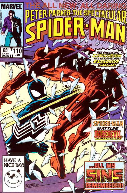 ALL MY SINS REMEMBERED With Betty Leeds at the mercy of the Sin Eater, Spider-Man and Daredevil rush to her aid. Fearing that she may have been murdered by the serial killer, he thinks back to how Betty was his first love. At the home of J. Jonah Jameson, where Betty has been staying, the Sin Eater stands in front of a desk chair with a hole blasted through it. However, he did not hit Betty, as she quickly slipped under the desk. The Sin Eater is surprised that he missed his shot. When she confirms that she works for J. Jonah Jameson, he attempts to choke her to death with his shotgun. As she gasps for breath, Betty asks the Sin Eater why he is committing his murders. The Sin Eater explains that he wants to kill Jameson because he opposes masked vigilantes, he killed Reverend Finn because he was against capital punishment, Judge Rosenthal because he went easy on criminals, and Jean DeWolff... because he felt like it. While he is explaining this, Betty manages to get a hold of a letter opener and stabs the Sin Eater in the leg. Before the Sin Eater can harm Betty further, Spider-Man comes crashing through the window. The Sin Eater tosses Betty at the hero to give him time to reload his shotgun. The hero webs the barrel shut, then yanks the gun out of Sin Eater's hands. Spider-Man breaks the shotgun over his knee and attacks the villain. Knowing that the Sin Eater is really Detective Stan Carter, he is enraged when Carter claims that they are alike. Losing his temper. Spider-Man begins mercilessly beating the Sin Eater. He is angry not just because of the murders he committed, but how Stan strung him along and pretended to be Spider-Man's friend. The wall-crawler's rampage is stopped by the arrival of Daredevil, who stops Spider-Man before he kills Carter. However, the wall-crawler refuses to stand down, so Daredevil has to put himself between the hero and the killer. He tries to convince Spider-Man that the only threat in the room is himself, angering the web-slinger is sick of Daredevil's constant recriminations, the two come to blows. Their struggle takes them out onto the street while they argue over ideologies on crime fighting. Ultimately, a combination of Spider-Man's blind rage and Daredevil's enhanced senses prove to be the wall-crawler's undoing and he is knocked out by Daredevil. In the aftermath of the battle, Daredevil considers the fact that he also lost someone close to him thanks to the Sin Eater. He wonders if Spider-Man feels too much about this case, or if he doesn't care enough. Not long after the arrest of Stan Carter, the press swoops in and tries to investigate Betty and Marla Jameson. Betty is disgusted that the press is sensationalizing the danger she was in. As the news that the Sin Eater was a police detective becomes public knowledge the public is outraged. Other officers wonder what sort of backlash they're going to get from the public. At a bar, some patrons complain how the police are always covering for each other. Elsewhere in the city, a young boy is found at the window of his apartment is told to go back to bed. When his father wonders where their portable television is, the boy thinks how surprised his parents will be when Santa Claus returns with a new television he traded the portable model for. The next morning at the Daily Bugle, Peter Parker arrives to see J. Jonah Jameson returning from the distributor's conference in Florida. He is furious about the who ordeal but suddenly changes his mood when Peter informs him that the Sin Eater had been captured after putting Marla's wife at risk. Peter finds some perverse joy in telling Jameson that it was Spider-Man who saved her life and caught the killer. In the office, Peter gets a call from his Aunt May, who is worried about her tenant Ernie Popchik. He left the house after the news about the Sin Eater and took his old service pistol. He assures his Aunt that he will try to keep an eye out for him. Overhearing this, Joe Robertson assigns Peter to take photos for a vox populi article about the Sin Eater. At that very moment, aboard a subway train, Ernie Popchik reads the newspaper and thinks about how unsafe the city has become. He is on his way to the World Trade Center, but when some young men get onto the train and try to hassle him for money. Panicking, Ernie pulls out his gun and shoots the three men and flees the train when it stops. Soon, the news that Stan Carter is being transferred to Rykers Island is leaked to the media and made public knowledge. As the situation unfolds, police chief James D'Angelo, District Attorney Blake Tower, and an agent of S.H.I.E.L.D. discuss the Stan Carter case. The S.H.I.E.L.D. agent explains that Stan might be found not criminally responsible for his crimes. He explains that Stan was a test subject for S.H.I.E.L.D.'s research and development division. There he was injected with drugs like PCP and Angel Dust so they can study the apparent strength enhancement functions of these drugs. During this program, Stan became increasingly paranoid and because acting violently toward authority figures. When Carter was later retired from S.H.I.E.L.D., they were certain that the drugs were out of his system. He figures that the recent death of Stan's partner pushed him over the edge. This does not impress Blake Tower, who has a public relations nightmare on his hands. Their meeting is soon interrupted when an angry mob forms outside the police station and begin protesting. Spider-Man arrives on the scene and begins taking pictures. Suddenly, Daredevil arrives on the rooftop and the two begin arguing their ideologies on how to handle this situation. That's when the police send officers out in riot gear to hold back the crowd while they transfer Stan Carter to Rykers. Suddenly, a full-on riot breaks out, led by Carl Weatherby, Jean DeWolff's step-father. Daredevil leaps down to try and stop the riot, but Spider-Man refuses to get involved. That is, until, Daredevil is swarmed by ri