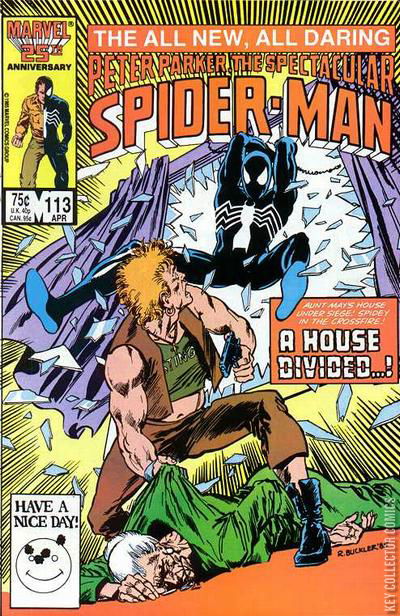 MAYHEM Ernie Popchik comes rushing into Aunt May's boarding house telling May to close the door quickly as there are members of the press following after him, demanding answers about Popchik's recent release from jail. As Aunt May's other tenants come to Ernie's aid, May forces the door closed. Popchik apologizes for the media circus as his son informed the press that he would be returning home today. May understands and Nathan Lubenski tells Ernie that some people consider him a hero for shooting the hoods in the subway. Ernie doesn't feel like a hero, as he shot them out of fear after he was mugged a few days earlier. Arthur Chekov asks May if there is anything her nephew Peter can do to get the media off their front step. Nathan agrees, thinking Peter needs to do something for his aunt for once. May thinks Peter can do something as he can be pretty persuasive. Elsewhere in the city, Spider-Man has caught a stool pigeon named Joey Face to learn what he can about why the Hobgoblin is now working for the Rose. However, when Joey has nothing to tell, Spider-Man leaves in frustration. He heads back to the Daily Bugle where, as Peter Parker, he hopes to get a photo assignment from Kate Cushing. He finds Kate talking to reporter Joy Mercado. When they see Peter they ask him to try and use his connections with his aunt to try and get an interview with Ernie Popchik. Peter doesn't feel right doing so, but Joy reminds him of his erratic work and guilts him into doing it. Although he is going to feel bad for weeks, Peter leaves for Queens with Joy Mercado. Meanwhile, the thieves who were shot by Ernie Popchik have just been released from the hospital. They're furious that the old man is being hailed as a hero after nearly killing them and have decided to pay him a visit. Travelling by subway, the goons decide to pass the time by mugging a woman and her daughter. At that moment, a gang of jewel thieves are going over their haul when suddenly they are interrupted by the Black Cat. She easily incapacitates the heavies and ropes up their leader. The man tells the Black Cat that the thief known as the Foreigner has a more valuable collection. Although she thinks the Foreigner is a myth, she is interested and gets the address, but still keeps the stolen gems. As she leaves, the Black Cat intends to fence the stolen gems and donate the money to the Hudson Street Orphanage. Meanwhile, at the Woolcott home, Fritz Woolcott complains to himself about his son Alex's need for intention while working on his disintegration ray. Alex soon comes into the room and tells him that a lawyer has come to see him and his wife. The lawyer, Mr. Colby, has come to help the Woolcott's fight against a child abuse accusation filed by one of Alex's teachers. Fritz doesn't want to deal with the inconvenience of going to trial. Colby has a simple solution, that if they move to another district, the school board will have to begin their investigation from scratch. As they discuss this situation, Alex is fooling around with his father's newest invention. He puts his hand into the path of the disintegration mean causing a massive flash. Fritz and the others enter his lab where he scolds the boy. He is about to hit the child when he remembers that his lawyer is present and instead comforts the boy. As Alex comes out of his shock, he notices that his hand has started glowing. Later, in Forest Hills, Anna and Mary Jane Watson are heading back to Aunt May's house. Anna uses this time to ask Mary Jane about her relationship with Peter, pointing out that they are more than just friends. Mary Jane tries to brush this off, but his Aunt sees right through him. She thinks to herself that she is trying to deal with the fact that Peter is secretly Spider-Man. When they see a group of men climbing into May's house through the window, Anna suggests that they call the police, however, Mary Jane intends to call Peter first, knowing he can do more as Spider-Man. At the same time, Peter is just arriving with Joy Mercado. Joy explains to Peter that she would sell out her own mother for the right story, but Peter still doesn't feel right about his current assignment. When they arrive at Aunt May's house they are shocked to see the police have the house surrounded. As Peter demands what's going on, Lieutenant Kris Keating is trying to negotiate with the intruders in order to get them to let the occupants of the house go. Peter is found by Mary Jane who fills him in on what's going on when suddenly his spider-sense begins to go off. Suddenly, there is a shot from inside the house, prompting Joy to push Peter and Mary Jane to the ground. Keating tells his officers that the crooks have crossed over the line and to get into position. Peter is determined to do something, but Mary Jane tries to tell him to not get involved. She worries that his emotions might get the better of him and he might get his Aunt and everyone inside killed. Inside, the leader of the gang, John, finished making his demands and hangs up. Nathan Lubinsky chastises the young man for holding them hostage. However, the young man jokingly explains that they need to show them respect as he and his friends are famous celebrities, given that they all have the same first names as the Beatles. When John insults Nathan's manhood, Aunt May slaps him across the face. Furious, John grabs Aunt May and pushes her toward the window and puts a gun to her head. Seeing this development, Mary Jane tells Peter to forget what she told him and save everyone inside. Peter quickly changes into Spider-Man and sneaks into the house from his bedroom window. In the hall, he ambushes one of the thugs watching Anton Chekov as he goes to the bathroom. Downstairs, Nathan warns John not to threaten May again only to get have his wheelchair knocked over sending him spilling to the floor. Suddenly, John hears a thump and goes to the phone demanding to know what's going on. Kris Keating tells him that they haven't moved