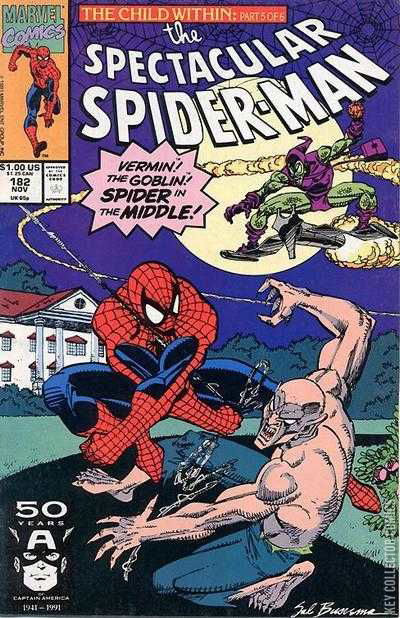THE CHILD WITHIN PART 5 - RECKONINGS Edward's parents home has been invaded by Vermin who has come to kill his father in retaliation for all the years of abuse. Confronting his father in his bedroom, the creature who was once their son reveals to his father that he finally remembers the truth and he will make all the pain go away. Vermin leaps onto his father's bed and is about to attack when suddenly, the young boy he found in the sewers -- a hallucination of his younger self -- begs Vermin not to kill their father. Elsewhere, Spider-Man is at war with hallucinations of his own. After being exposed to a hallucinogenic gas by the Green Goblin and haunted by the memory of his dead parents, Peter Parker has withdrawn deeply into his own mind. He begs his parents to come back, that he will be good as long as they stop being dead. In the darkness, Peter eventually hears the voice of Ashley Kafka, who is gently coaxing him out of the emotional shell he has surrounded himself in. Peter begins reliving his travel through the tunnels he imagined when he was buried alive by Kraven the Hunter. Ashley talks Parker through the guilt he feels over the death of his parents, something he feels was his fault because he was a bad child. Her demands for Peter to grow up and be a man finally pull him out of his catatonic state. Spider-Man suddenly leaps off Ashley's couch and struggles to his feet. As she congratulates him for processing his inner demons, they fail to see the Green Goblin flying by. Back at the Whelan mansion, the hallucination of Edward's younger self begs Vermin not to kill their father, telling Vermin that it is wrong. Vermin points out that what their father did was wrong as well, and he needs to pay. Confused by this exchange, Edward's father asks who Vermin is talking to as there is nobody there. This revelation makes the hallucination disappear, and Vermin is pleased that nobody will stop him from what he must do. However, before he can land a killing blow, Edward's mother begs him to spare her husband's life. Hearing her cries, Vermin pauses and when he confirms that she is his mother, Vermin climbs off the bed and is comforted by his mother. Mrs. Whelan tells Vermin that she knows what Baron Zemo did to him and promises that nobody will hurt him ever again. However, by this time, the authorities have been summoned to the Whelan home and are surrounding the area. Spider-Man is still recovering from his ordeal, and is still making sense of the revelation of the guilt he felt for the death of his parents, even though he had nothing to do with it. Kafka assures the wall-crawler that this is a common defense people develop to supress harmful memories. Unfortunately, all it does is make it more traumatic when these feelings come back up to the surface. Before she can continue, the pair are interrupted by one of Ashley's nurses. She tells the pair that Vermin has been located and hearing that he is in Scarsdale, she fears the worse. As she turns to ask Spider-Man for help, she discovers that the wall-crawler is already gone. As Spider-Man swings across the city, he thinks about how the Vermin's reappearance is bad timing as he needs time to process what he learned about himself, as well as finding Harry and getting him help. Back at the Wheland mansion, Vermin has become aware of the police presence and becomes upset because authority figures have always hurt him. Vermin turns his anger toward his mother, who he blames for doing nothing to protect him while his father abused him. By this point, Edward's father has come out of his state of shock and recovered the pistol from his night table. He denounces the creature, saying that Vermin is not his son, and orders him out of his home or he will shoot. This confirms Vermin's worldview that he will no longer be Edward Wheland again and orders his rats to attack. As his father is knocked off his feet, Vermin decides to pass judgement on his father for his past crimes. Grabbing the pistol off the ground, Vermin decides to sentence to his father to death. However, Vermin discovers that he can't bring himself to pull the trigger and recoils away. The creature finds himself struggling between his two personalities, that of Edward who still loves his father and Vermin who wants him to pay for his crimes. That's when Spider-Man enters the room through the window. He tries to convince Vermin to return to Doctor Kafka to get help. Unfortunately, Vermin's hatred for the wall-crawler prevents Vermin from listening to reason. Vermin leaps at Spider-Man, pushing them both out of a window and onto the front lawn. As the authorities try to get into the house, they are swarmed by Vermin's army of rats. Meanwhile, Spider-Man swings Vermin up onto the roof and once more tries to convince him to stop fighting. Vermin attacks in a blind rage, slashing open the side of the hero. Weakened from all his ordeals that night, Spider-Man is easily overpowered and sent slamming into the side of a chimney. Before Vermin can kill the wall-crawler, he is blasted from behind by the Green Goblin who intends to be the one to finally kill Spider-Man.