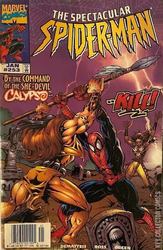 SON OF THE HUNTER! PART 3 Calypso has unleashed the primal savagery in both Kraven the Hunter and Spider-Man in the hopes that both will battle each other to the death. As the two fight it out, Calypso's followers begin beating drums to increase Spider-Man's fighting frenzy. She then goads Kraven to do what his father, the original Kraven, failed to do and kill Spider-Man. Meanwhile, in Queens, Mary Jane's Aunt Anna has confronted her with the fact that she has figured out her husband, Peter Parker's, secret. Mary Jane is afraid for a moment, fearing that Anna has figured out that Peter is secretly Spider-Man. However, when Anna suggests that Peter is having an affair, Mary Jane bursts out in laughter. She explains that Peter is always ducking out because he is juggling his classes at Empire State University and his job at the Daily Bugle, and that he is a very loyal husband. However, Anna refuses to be convinced, wondering how her niece could be so naïve. She then storms out of the room telling Mary Jane that she will have to learn the hard way, just like she did. Mary Jane is suddenly very confused by what her aunt could mean. While in Lower Manhattan, the Grizzly and Gibbon's first foray into super-heroics has taken a turn when they accidentally drove their new crime-fighting vehicle into the harbor. Adding insult to injury, it will cost them $300 just to have a tow truck pull the car out of the water. Unfortunately, neither have the money to pay the towing fee and watch helplessly as their car is towed away. That's when they hear an explosion coming from a nearby bank and rush to investigate. There they witness as the White Rabbit and her goons are staging a bank heist. Back in the cemetery, the battle between Spider-Man and Kraven rages on. As Spider-Man gains the upper hand, he webs up Kraven and grabs a spear from one of the nearby warriors. However, when Calypso goads him to kill Kraven, Spider-Man instead turns and tosses the spear at her, striking the voodoo priestess in the shoulder. Both free from the influence of the beating drums, Spider-Man frees Kraven and they take down Calypso's minions. When she tries to flee, Kraven's lion, Gulyadkin, tries to take her down but Kraven orders the beast to stand down. In the aftermath of the battle, Kraven apologizes to going after Spider-Man instead of going to her to learn about his heritage and asks her for forgiveness. However, he has learned that Spider-Man had nothing to do with his father's death and refuses to give into a lust for revenge like his brother, the Grim-Hunter, before him. Since Kraven and Calypso have ended their feud with Spider-Man, the wall-crawler decides to let them go, glad that the Kraven's legacy of madness may have come to an end. Meanwhile, at Ravencroft Institute, the Doctor Jonas Mueller is allowed entry into the facility. His guide, Doctor Garrison, apologizes for the delay in getting Mueller security cleared after Leonard Samson took over the facility from Ashley Kafka. He is then allowed to see his patient, prisoner 758. This prisoner turns out to be the powerhouse known as Sir. Mueller reminds Sir that he helped create Sir, but he escaped before he could finish his experiments. Mueller, calling himself Doctor Angst, assures Sir that he will finish what he started making Sir greater than ever before, but first Sir has to do a job for his new employer, Norman Osborn. By this time, Spider-Man has returned home and climbs into the bedroom window. As he strips off his soaking costume, Peter tells Mary Jane of his encounter with Kraven and Calypso. Famished, he then goes downstairs to get some leftovers out of the fridge. There he is confronted by Aunt Anna, who wants to talk to him. She angrily confronts him about his alleged infidelity, confusing Peter. Mary Jane comes downstairs and explains to her husband that her aunt thinks that Peter is cheating on their marriage. However, despite Peter and Mary Jane's assurances that this is not the case, Anna refuses to believe them. Having had enough of this nonsense, Mary Jane decides to tell Aunt Anna the truth, that Peter is really Spider-Man. While at that moment, at the Kravenoff estate, Kraven the Hunter has repaid Calypso for her treachery by slaughtering her and her followers. He now believes he is worthy of the title of Kraven the Hunter, and vows that the slaughter has only just begun.