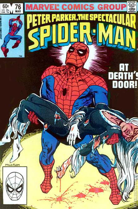 AT DEATH'S DOOR! Taking a moment to recoup from their battle with Dr. Octopus inside the Owl's Aerie, Spider-Man and the Black Cat are forced back into action when the combined forces of the Dr. Octopus and the Owl's henchmen catch up with them with guns blazing. As Spider-Man is dealing with them, the Black Cat attempts to regain footing after the beating she got from Dr. Octopus. Octavius meanwhile has regained consciousness and is mentally commanding his severed mechanical arms to try and get the detonator the neutron bomb he intends to explode in New York. Seeing this the Black Cat gets up and smashes the detonator, cursing the girl for ruining his plans Octopus unleashes his mechanical arms on her, leaving her vulnerable and she is gunned down by the few crooks that Spider-Man has not rounded up yet. Seeing this, Spider-Man goes into a fury, beating all the crooks senseless, tearing apart Otto's arms even more and tossing them into the Hudson River. Seeing that the Black Cat is still alive but bleeding profusely, Spidey picks her up and rushes her to Columbia Presbyterian Hospital. There Spider-Man demands the staff doctors to save her life, after talking sense the distraught Spider-Man, they take her into immediate surgery, and Spider-Man watches from outside until he finally collapses from exhaustion. He is woken by the duty nurse just before dawn and is told that she is in critical condition but they believe that she will pull through however they are unsure if she'll suffer any brain damage. When Spider-Man realizes it's morning he rushes off as he has a physics exam at Empire State University. Peter makes it to his exam right in the nick of time and tries to focus on it but can't help but think about Felicia's medical condition. Finishing the exam just as the time runs out, Peter blows off his colleagues and Professor Sloan so he can change into Spider-Man and rush off to the hospital to check on Felicia's condition. There he meets Jean DeWolff who is at the scene because one of the Owl's men talked, she hands over to Spider-Man a copy of amnesty papers that she had originally written up for the Black Cat, which makes Spider-Man happy because it tells him that she is still alive. He rushes down the hall and is admitted to the Black Cat's room where he spends a moment pouring his feelings out to the seemingly unconscious Felicia. Considering that he cannot protect those he cares about, Spider-Man breaks down in tears. As he sobs, Felicia comes around and tells her that she'll be okay. Overjoyed, Spider-Man thanks the powers that be that let her live. While elsewhere, in another operating room, criminal scientists are working hard to reattach Dr. Octopus' severed mechanical arms. As Octavius screams in agony, the doctors offer him an anesthetic, but Otto refuses wanting to feel the pain, vowing that once he is back together he will get revenge against Spider-Man and the Black Cat, vowing to tear them limb from limb.