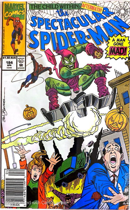 THE CHILD WITHIN: AFTERMATH Landing on a rooftop, Spider-Man suddenly detects a presence on the roof. When that person reaches out, Spider-Man whirls around and grabs their hand. It turns out to be the wall-crawler's old foe the Molten Man, who tells Spider-Man to take it easy, since he arranged this meeting. Mark Raxton is surprised at the hero lashing out with such ferocity like that. Spider-Man apologizes, explaining that he is worried about Mark's brother-in-law, Harry Osborn. When Raxton asks why he's worried about Harry, as he thinks Osborn is out of town on business. Unfortunately, this is not the case as Spider-Man reveals that Harry became the Green Goblin again, and escaped during his last battle with the wall-crawler.� This revelation angers Mark, who doesn't think it's fair that Harry Osborn should suffer like this again.� Spider-Man calms him down and tells him that they need to find Harry and get him help. When Raxton asks why Spider-Man wasn't able to catch the Green Goblin, the wall-crawler explains that he hasn't slept in days. Suddenly, his spider-sense goes off, but when Spider-Man whirls around he sees nothing. He dismisses the sensation like it was just a false alarm, unaware that he was briefly being watched by the Green Goblin.� The Goblin had briefly considered Spider-Man then and there but is still confused about what he should do now that he is the Green Goblin again. Deciding that he needs time to thing, the Goblin returns to the Soho loft where he lives with his family. There he enters the bedroom of his son Norman. Removing his mask to reveal who he really is, Harry tells Norman not to be afraid. He tells Norman that he has to go and he is not sure when or if he will come back again. However, he wanted to see his son one last time before he left to remind the boy that no matter what that he loves him. That's when Liz walks into the room to find out what the noise is. Seeing Harry with his Goblin mask on is the last thing Harry wanted to see and flees, ignoring her cries. More confused then ever, the Green Goblin decides to embrace his power and begins tossing pumpkin bombs at the people in the streets below.�� Meanwhile, at the mental health facility run by Ashley Kafka, Edward Whelan is undergoing treatment. Kafka has managed to get through to Edward's human side that he has reverted back to human form. However, Edward begins losing control, and despite Ashley's encouragement to fight it, Edward transforms into the Vermin once more. Vermin then begins trashing the room he is in contained in, forcing the psychologist to fill it with knock out gas. That's when she is interrupted by the arrival of Spider-Man, who hears Vermin's threats toward her before being knocked out. The wall-crawler wonders how this could be a good thing. She explains that her theory that Edward's transformation into Vermin was as much psychological as it was physical is proving true.� That her work and Vermin being forced to confront his abusive father is starting to free Edward's psyche from his subconscious.� Vermin's threats toward her is proof that Vermin is losing control over the shared body and that eventually, Edward won't need Vermin anymore. After getting this update on Vermin's status, Spider-Man tells her that he has to go. However, Kafka asks if there was anything else Spider-Man wanted to know. He is concerned about when she saw him with his mask off the other night. She assures him that it was too dark to get a good look at his face and, respecting his secret identity, put his mask back on as soon as possible. Satisfied with this answer, Spider-Man thanks her and swings away.�� As Spider-Man swings through the city, he can't help but relate with Vermin. He recalls how the Green Goblin exposed him to hallucinate gas that allowed him to see how much the death of his own parents still impacted his life, and coming to terms with their loss.� Suddenly, the wall-crawler is struck by another jolt from his spider-sense. He quickly lands on a nearby rooftop, and thinking it's Harry calls out to him. However, there is not a single soul to be seen. While at the Osborn's Soho apartment, Mark Raxton comforts his step-sister Liz. He tells Liz that he loves her, something that she knows. While upstairs, Peter Parker has returned home and is asking his wife Mary Jane, how he could have been so stupid as to allow Harry to escape during their last battle.� Mary Jane listens to his rant for as long as it takes to finish brushing her teeth. She sits Peter down on their bed and tells him not to say another word. When he protests, she kisses him and the two roll over onto the bed. Later, when Mary Jane is apparently asleep, Peter gets up and changes back into Spider-Man. He then goes back outside to search for Harry. However, Mary Jane is still awake, and after her husband is gone she hopes he finds Osborn but prays that he be careful.�� Spider-Man is swinging across�the city once more, racking his brain trying to think where Harry could have gone. Suddenly, his spider-sense goes off again, but this time he sees the cause. Seeing a green clad arm poking out from behind a building roof access, Spider-Man swings down and grabs hold. Much to Spider-Man's irritation, it's not the Green Goblin, but his Frog-Man, the young hero who has been trying to become Spider-Man's sidekick for some time.