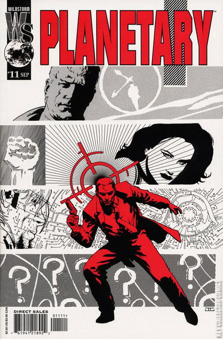Cold War WRITTEN BY WARREN ELLIS. ART AND COVER BY JOHN CASSADAY. Elijah Snow has been silent about his private conversation with William Leather since it happened. He has not spoken to anyone about it because he has been trying to work out what it all means. Now, he needs help - but he cannot trust Planetary. He must go to a man he met long ago, a man who understands secrets - the oldest living secret agent on Earth - to try and discover the truth about the Four, Planetary, and his own life The bar, "The Last Shot", that John Stone and Elijah Snow goes to is the same bar that was first seen in StormWatch #46. Elijah Snow's memories of Sherlock Holmes, Anaykah, and his encounter with Randall Dowling are further elaborated in Planetary #13, Planetary #14, and Planetary #17. The cover of this issue evokes Jim Steranko's S.H.I.E.L.D. covers, particularly Nick Fury, Agent of S.H.I.E.L.D. #4. John Stone is based on popular fictional spies such as Nick Fury and James Bond. S.T.O.R.M., a precursor of StormWatch, is a nodding reference to the Marvel Comics organization S.H.I.E.L.D.. Stone's nemesis The Bride is possibly an analogue to the Marvel Comics villain Madame Hydra. The S.T.O.R.M. agent that was fatally shot by The Bride bears a strong similarity to Nick Fury, as indicated by the cigar, eyepatch, and stubble. The Nautilus in the flashback resembles to the one depicted in the Disney film adaption 20,000 Leagues Under the Sea.