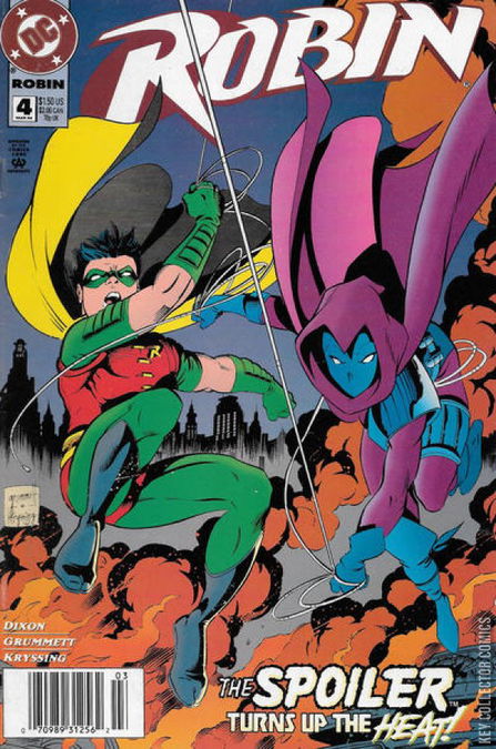 BREATHLESS Robin and Spoiler get on the trail of Cluemaster, Czonk and Electrocutioner, as do the cops. Robin soon figures out that a clue sent by Czonk to the police for no apparent reason is indicating the theft of worn-out currency, so he interrupts the robbery. However, he and Cluemaster become trapped in the back of the armored van containing the loot, and the van itself is soon buried in concrete, where no one will think to look for it.