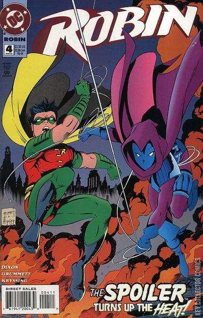 BREATHLESS Robin and Spoiler get on the trail of Cluemaster, Czonk and Electrocutioner, as do the cops. Robin soon figures out that a clue sent by Czonk to the police for no apparent reason is indicating the theft of worn-out currency, so he interrupts the robbery. However, he and Cluemaster become trapped in the back of the armored van containing the loot, and the van itself is soon buried in concrete, where no one will think to look for it.