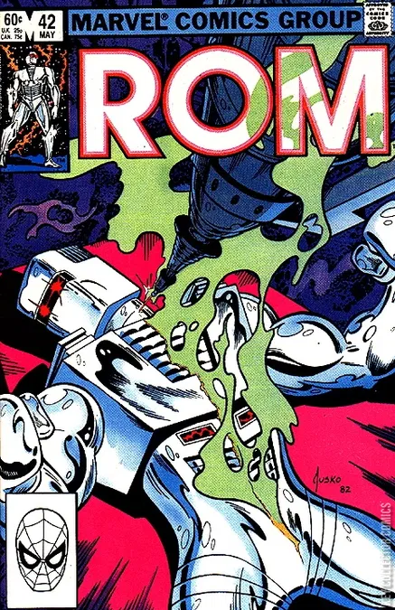 Rom strikes an unholy bargain with Quasimodo the Living Computer (last seen in Incredible Hulk #259). In exchange for his humanity Rom shall give up his Spaceknight armor to the sentient machine. Quasimodo promises to make a human clone of Rom. There's no way this ends well.