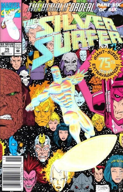 "Destruction" The Herald Ordeal part 6 of 6. When the heralds arrive to fight Morg they soon realize they are no match for him since his power has been augmented. Terrax tells the Surfer that Galactus has some respect for him and they only way to stop Morg is through Galactus. Surfer heads for Galactus' ship while the others begin battle with Morg.The Surfer approaches Galactus, who will not listen. They battle each other and Galactus nearly kills the Surfer. The Surfer tells him that he and Morg can kill all of them, but Morg's evil will draw others and Galactus will be forever tormented. This information makes Galactus think and he agrees to take the power he has given Morg away from him.When the Surfer returns, Air-Walker has been severly damaged. Firelord is cut and bleeding. Terrax is down and his axe shattered. Nova launches an attack to Morg, seemingly defeating him. But Morg is only faking and attacks her when she turns her back. She knowns something is wrong and dies in the Silver Surfer's arms. The Surfer is furious and gets ready to attack Morg. They are stopped by Galactus. Galactus then removes his Power Cosmic.He is still extremely powerful without it and continues to fight the heralds. Terrax tells them they must work together to kill him, but the Silver Surfer will not sink to his level and refuses. Surfer tries to stop Terrax but is too late, he has killed Morg with his own axe.Firelord and Air-Walker agree to become Galactus' heralds for the time being. A man of his word, the Surfer allows Terrax to leave, and he takes his new axe. Surfer already misses Nova and says a few words, sending her body into a nearby star.
