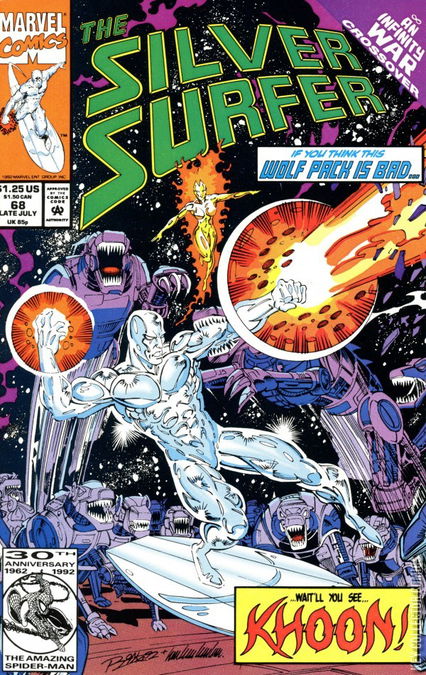 "Lost" Silver Surfer, Nova, Galactus and Dr. Strange continue on their journey through the inter-dimensional spaceways.Galactus mistreats Nova, which causes her to go off alone. The Silver Surfer follows her.He asks her what is wrong and they reconcile their past together. She tells the Surfer she does not know if she can be Galactus' herald any longer. She cannot handle being an accomplice to genocide any longer or how Galactus treats her as a servant. The Surfer tells her it took him a long time to make peace with himself over what he had done for Galactus and she must find her own way to make peace with herself. The Nova spots something out the window of the ship.The ship is under attack. Strange tells them that this realm should be devoid of life. Galactus tells Nova and Surfer to go outside and invistigate. They cannot fly outside or they might be lost forever. They tether themselves to the ship and venture outside.They are attacked by numerous robotic wolves. They fight them back to back, but the numbers are too great. The Surfer unleashes an incredible destructive attack and destroys them. Fortunately, he does not damage the ship.They are then met by Khoon, who claims they destroyed many of his servants. He will not kill them though, he wants their ship.