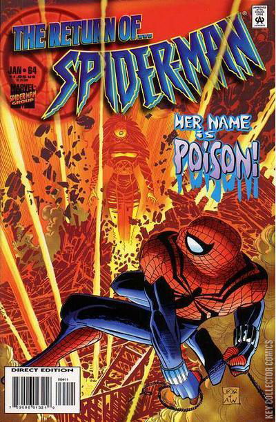 THE GAME OF LIFE At the scene of an apartment fire, Spider-Man performs CPR on a young boy who is stopped breathing. To his relief, the wall-crawler gets the boy breathing again and he is rushed off the scene by paramedics. That's when Spider-Man is approached by members of the media who begin to ask him if he is the original Spider-Man or another individual and if he has any connections to the Scarlet Spider. The wall-crawler ignores their questions, hearing the young boy plead for someone to rescue his mother, who is still trapped in the burning building. Although firefighters don't have much hope that a woman could survive in the inferno. Although the boy pleads with the wall-crawler to help rescue his mother, Spider-Man wishes he could as no child should lose their parents. Once the ambulance is out of sight, it is attacked by the mercenary known as El Toro Negro who has come for the child. Back at the scene of the fire, Spider-Man continues to ignore the reporters so he can web up falling debris. That's when everyone notices a woman fly out of the building. Although her clothes are tattered, she appears to be unharmed by the flames. She calls out to her son, Carlos, who was the boy taken away in an ambulance. The woman suddenly collapses to the ground, prompting Spider-Man to rush to her side. The woman, named Poison, recognizes the wall-crawler and begins telling him that the fire was intentionally set and the person responsible is dangerous. When Spider-Man tells her that she needs to calm down and get to a hospital, she becomes upset. The web-slingers attempts to calm her are interrupted by the reporters who are still trying to interview him. Fed up with the constant questions, Spider-Man webs up their cameras and microphones and then promises Poison that he will find her son. Later, Ben Reilly reports for work at the Daily Grind where he takes interest in news reports about Poison. Between the news reports and Buzz, the Grind's ever-present regular, Ben learns about Poison's career as a vigilante taking down drug cartels in Miami. However, Reilly is disturbed to learn that there is no report about the boy that Spider-Man rescued. Elsewhere, a wealthy man named Paris Scott watches the news, he is a participant in the Great Game and the news about Poison greatly interests him. While at this moment, Mystery -- disguised as Randolph Hines -- has just finished purchasing a television transmitter that will finally allow him to achieve his dreams as well as finally end the life of Spider-Man. Later, Ben Reilly has finished his shift at the Daily Grind and is signing the lease on his new apartment. When his landlord comes back to give him his security key, Ben has somehow left his apartment without her seeing. This is because Ben changed into Spider-Man and left out the window to begin his search for Poison's son Carlos. His first stop is the hospital to tell the woman what happened to her son. She instantly becomes angry that Spider-Man failed to protect her son. He learns from the nurses that the boy never arrived at the hospital, and tell him to leave while the sedate Poison as his presence is agitating her. An hour later, Poison is visited by a Great Game representative named Trenton Lipton III. He has come to give her a new costume, the rules of the Great Game, rules she will have to follow if she wants to get her son back. When Spider-Man returns later, Poison is out of bed and wearing her new costume. As he tries to get her to explain what's going on, she calls El Toro Negro to learn where she can recover her son. Hearing El Toro's name, the wall-crawler warns her that the mercenary cannot be trusted, but she doesn't want to listen to him and flies away. When Poison flies off, Spider-Man decides to follow after her to make sure she doesn't get in over her head. Soon, Poison forces her way into the warehouse where she is supposed to meet El Toro Negro. There she demands that he return her son, however, the villain reveals that he has Carlos strapped with explosives. In his hands, El Toro Negro is holding a "dead man's switch" that will set off the bombs if anything happens to him. He then demands that she call Paris Scott and tell him that she is resigning from the Great Game and that Negro will take her place as Scott's champion. Poison agrees, using the provided phone to tell Scott that she will not participate. That's when Spider-Man comes crashing into the warehouse warning Poison not to trust El Toro Negro. Annoyed by the wall-crawler's interference, and reminded of how a similar individual led to his arrest, he orders Poison to kill Spider-Man in order to get her son back. Desperate to get her boy back, Poison attacks Spider-Man, who is caught off guard by her strength and speed. However, as she tries to strangle the web-slinger to death, Carlos cries out to his mother to stop, telling her that Spider-Man saved his life the night before. This causes Poison to pause, but El Toro Negro reminds her that he will kill her son if she doesn't comply. Explaining how she has been given powers by an alien force, she uses the energies within her body to seemingly incinerate Spider-Man. However, this is all a ruse, as she actually teleported the web-head close enough to web up the detonator. While Spider-Man knocks out El Toro Negro, Poison frees her son from the explosives. With El Toro Negro webbed up for the authorities, Poison thanks Spider-Man for his help. When Spider-Man asks if there is anything he can do to help Poison and her son set themselves up in New York City, she tells him that he has already done enough and will now live by his example.