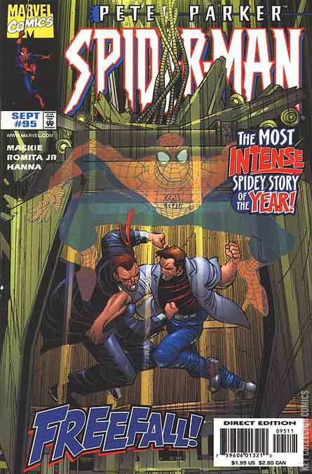 FREE FALL A typical work day at the Daily Bugle is rocked by an explosion in the city room! And the powerful blast traps four people in the elevator: Peter Parker, Betty Brant, Normie Osborn, and Norman Osborn! Talk about an awkward quartet! As the elevator begins to collapse, Norman taunts the web-slinger to use his powers to save them! Will Peter risk revealing his secret identity to save Betty and Normie? Time is running out!