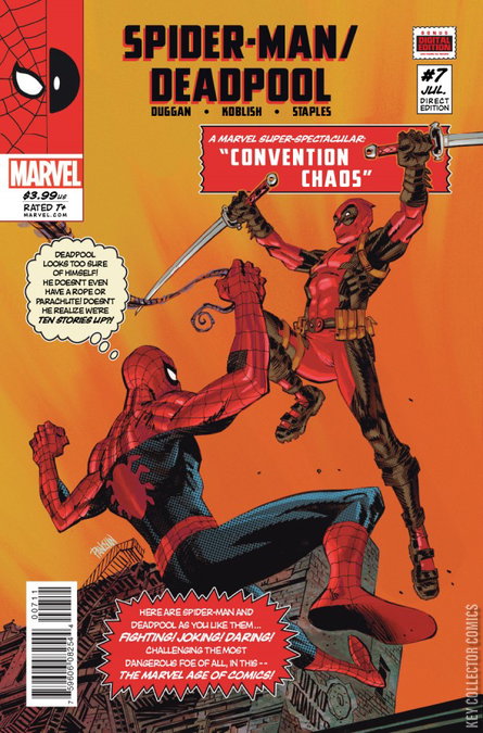 CONVENTION CHAOS Another guest issue while Joe Kelly and Ed McGuinness get ahead on their epic story! In the Deadpool tradition, we present a “lost” issue of the Amazing Spider-Man! Flashback to the swinging ‘60s for one of Deadpool & Spidey’s earliest meetings! Don’t be a flake – beat feet to your shop and order now!