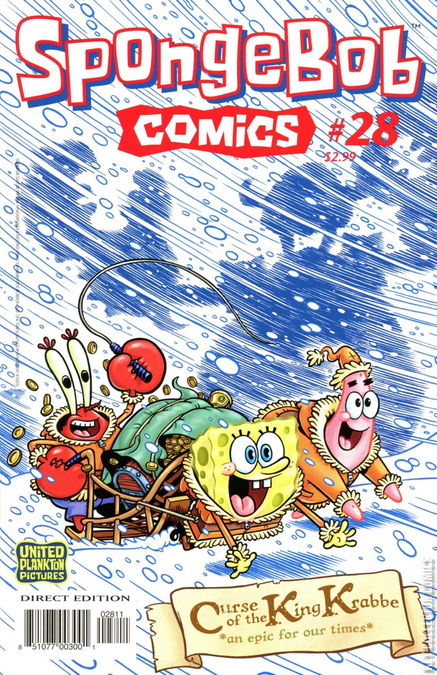 In the remote wastes of the northern waters, something monstrous sits encased in ice, waiting to be thawed out by two of the silliest nincompoops in the Seven Seas. SpongeBob and Patrick track a wayward Mr. Krabs to the frozen ruins of an ancient civilization and must deal with the enraged creature that once ruled it! In the tradition of H.P. Lovecraft, Carl Barks, Roy Crane, and Snow Dogs comes a full-length SpongeBob arctic adventure, 'The Curse of King Krabbe!' Also: Squidward's new career, comics-loving pirates stuck in pack ice, frigid facts about arctic ocean life, and more!