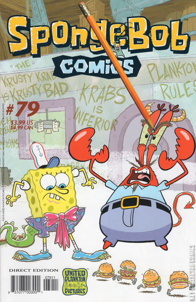 It's all-out aquatic op-ed war as Plankton and Mr. Krabs engage in the extreme sport of editorial cartooning in the newspapers of Bikini Bottom! Their slanderous scribblings even draw SpongeBob and Squidward into the destructive conflict-threatening everything they hold dear! Find out who gets the last laugh in 'The Cross-Hatch of Despair!' Also: the threat of whirlpools forces Mr. Krabs to activate 'The Buddy System,' which means Squidward and SponegBob must stay close together all day! And in 'Facial Hair Scare,' a fake beard mishap throws Patrick into an identity crisis! All this plus 'Ocean Facts' by Maris Wicks and 'SpongeFunnies' by James Kochalka!
