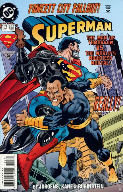 TRADING PLACES The Cyborg-Superman is back and the Man of Steel intends to end his evil ways here and now. Plus, when the World's Mightiest Mortal spots his arch foe Black Adam, he pounces. But, what these two heroes don't realize is that they're really fighting each other. Can someone please find out what is going on before the Earth's two strongest champions kill each other? Meanwhile, Lois continues her search for Clark.
