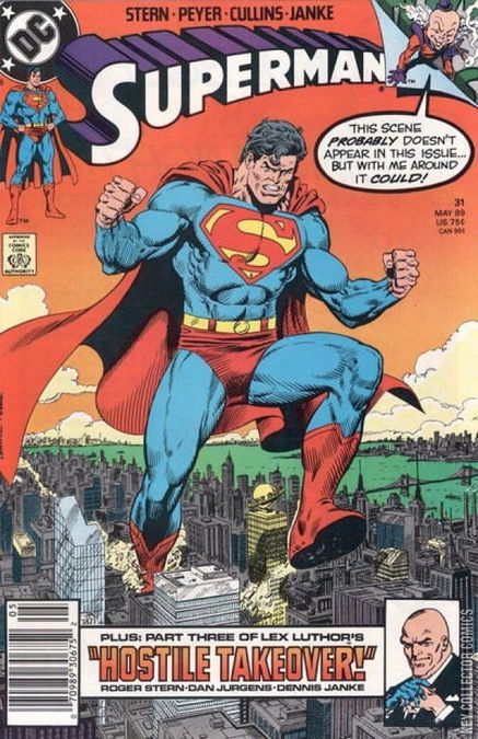 Superman in Exile. Part 7 of 13. "Mr. Mxyzptlk in As Good as His Word!" Story by Roger Stern and Tom Peyer . Art by Paris Cullins and Dennis Janke. Story continued from Adventures of Superman (1939-2006) #453. All Lex Luthor issue! That mischievous imp, Mr. Mxyzptlk, is back in Metropolis. With the Man of Steel in a self-imposed exile in deep space who will stop him. Well, Lex Luthor has never been one to share his city. Plus, Luthor's machiavellian scheming continues in "Hostile Takeover: Poison Pill!" Part 3 of 4. Story by Roger Stern. Art by Dan Jurgens and Dennis Janke. Both stories continue in Adventures of Superman (1939-2006) #454.