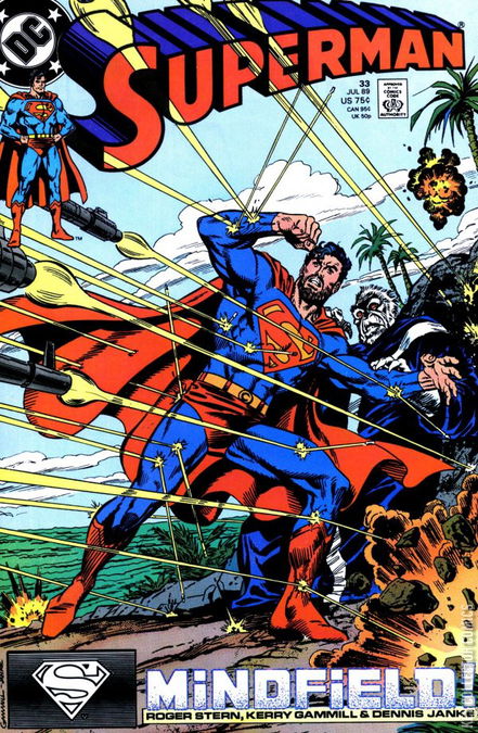Superman in Exile. Part 12 of 13. "Two Destinies!" Story by Roger Stern. Art by Kerry Gammill and Dennis Janke. Story continued from Adventures of Superman (1939-2006) #455. The old cleric probes the Last Son of Krypton's mind with the Kryptonian Eradicator (remember that name - it's a name that will come back to haunt the Man of Steel), and gets him one step closer to redemption. Story concludes in Adventures of Superman (1939-2006) #456.