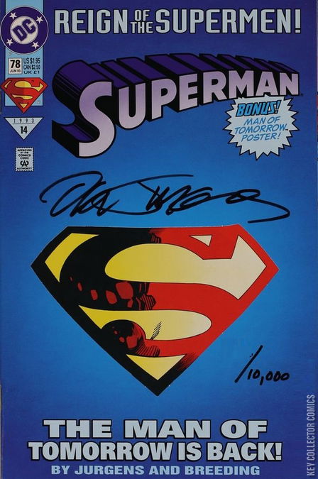 Home / DC / Superman / Superman #78 DC Released June 1993 Superman #78 Add to Collection Want It Synopsis No synopsis available. Issue 79 of 227 Add to Collection Buy it on eBay Buy on eBay Low $1 Mid $2 High $3 Synopsis No synopsis available. Details Series Superman Cover Date June 1993 Pages N/A UPC N/A Cover Price N/A Final Order Cutoff N/A Creators Artist Dan Jurgens Writer Dan Jurgens Price Guide Log in or subscribe to access detailed graded price information and market insights. Log In Subscribe