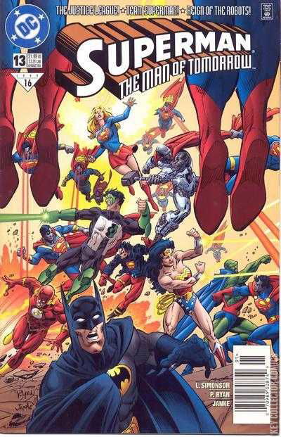 It's the JLA versus the Man of Tomorrow!; With an army of Superman robots at their master's side, the odds look pretty bad for the JLA; But don't tell that to Orion, who goes one-on-one with the Last Son of Krypton in a truly remarkable slugfest.