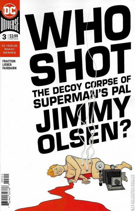 Dearly beloved, we have gathered here today in this catalog to remember our friend, Superman’s pal, the late Jimmy Olsen...’s assassination decoy! Wait, somebody killed Jimmy’s decoy body? But whodunit? And, like, whydunit? And…wait, when did Jimmy get a decoy of himself? What we do know is it’s not safe for Jimmy in the City of Tomorrow anymore, and with Superman busy and all (you read that SUPERMAN #15 solicit yet?), Jimmy’s best bet is to solve his own murder within the safe borders of Gotham City! (Seriously, “safe”?)