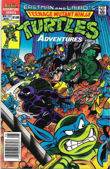The Final Conflict : Stump Intergalactic Wrestling is once again broadcasting the Turtles' battle - only this time it's a fight to find the Turnstone. The TMNT and their allies (Leatherhead, Trap, Wingnut and Screwloose) are skirmishing with the the insect warriors sent by the creepy alien queen named Maligna. The Turtles, Leatherhead and Trap aren't having too much trouble battling the bugs in hand to hand combat, although they're vastly outnumbered. Wingnut and Screwloose fly off to look for Krang. Leatherhead is eventually grabbed by two bugs and sent flying out of the arena where the battle has been taking place. Wingnut and Screwloose find Shredder, Bebop and Rocksteady flying in their hovercars and attack them. On the ground, Trap and the Turtles mop up the rest of the insect warriors and begin to celebrate their victory... just a bit too early, as Krang arrives in his spaceship and begins firing at our heroes. Meanwhile, Leatherhead recovers from his throw and immediately sees the Turnstone sitting right in front of him. LH decides to think about the woman who turned him into a gator, and Cherubae appears - along with the four Sons of Silence! Leatherhead is surprised to see the aliens as he hadn't been thinking about them - Cherubae quickly orders him to "unthink" them. LH complies and the Sons of Silence vanish. The gator then asks Cherubae why she transformed him, and she asks him if he'd believe that she knew that Leatherhead would be the only one who could save the day by finding the Turnstone. LH doesn't believe her, but he hands her the crystal ball and tells her to "make things right."Cherubae takes the Turnstone and uses its power to summon Rocksteady, Bebop, Shredder and Krang, who appear before her held immobile inside of a force field. She then uses the device's vast abilities to destroy all of Stump's TV cameras... much to the disappointment of the enraptured audience. Finally, Cherubae uses the power of the Turnstone to banish their foes. She sends Bebop and Rocksteady...
