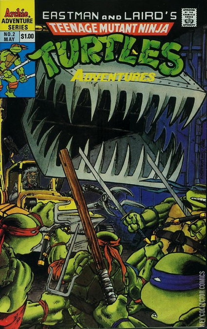 Return of the Shredder , part 2:  Shredder breaks Baxter Stockman out of an asylum and puts him to work. April is at Channel 6 with Mr. Thompson as a news report featuring the Karate gang (disguised as turtles) rob another bank. Thompson is happy that there's now proof that the TMNT are a menace. April calls Leonardo and tells him to meet her at the station. When the TMNT arrive, April plays them the tape of the bogus Turtles, and Leo surmises that Shredder is behind the deception. Just then, Thompson and his new girlfriend (who is turtlephobic) arrive. The girl spots the TMNT and goes into hysterics, so the Turtles flee out the window. Thompson demands to know why the Turtle terrorists were at his station, and April decides to take a new approach and tells her boss that she lured them there to expose them. Meanwhile, Splinter is home meditating when a huge, mechanized drill vehicle erupts into the sewer, piloted by Baxter. Stockman captures the Sensei and takes off, just as the Turtles get home. The TMNT follow the trail left by the huge contraption. When the Green Team gets to the end of the trail, they find the costumed Karate gang and a battle ensues. The Turtles win easily and find a message from Saki to meet at the Karate studio... if they dare! Of course they do! April decides to visit the Turtles and finds the tunnel made by the drilling machine, and investigates. The TMNT arrive at the karate studio just as Shredder is preparing to kill Master Splinter... but before the evil ninja can make his move, Baxter and his machine burst through the wall. The Turtles manage to get Baxter out of his vehicle and spoil Shredder's plans in one fell swoop. Saki grabs Stockman and makes his getaway. April report on the news that evening reveals the whole story about the Karate gang and their hoax. Thompson's girlfriend gets enraged that his station is defending turtles and dumps him.