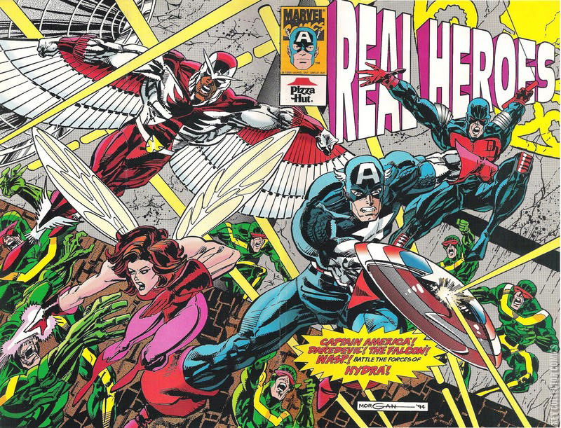 Captain America and Daredevil on front. Pizza Hut public service comics. Community Service featuring Captain America, Daredevil, The Falcon, and The Wasp
